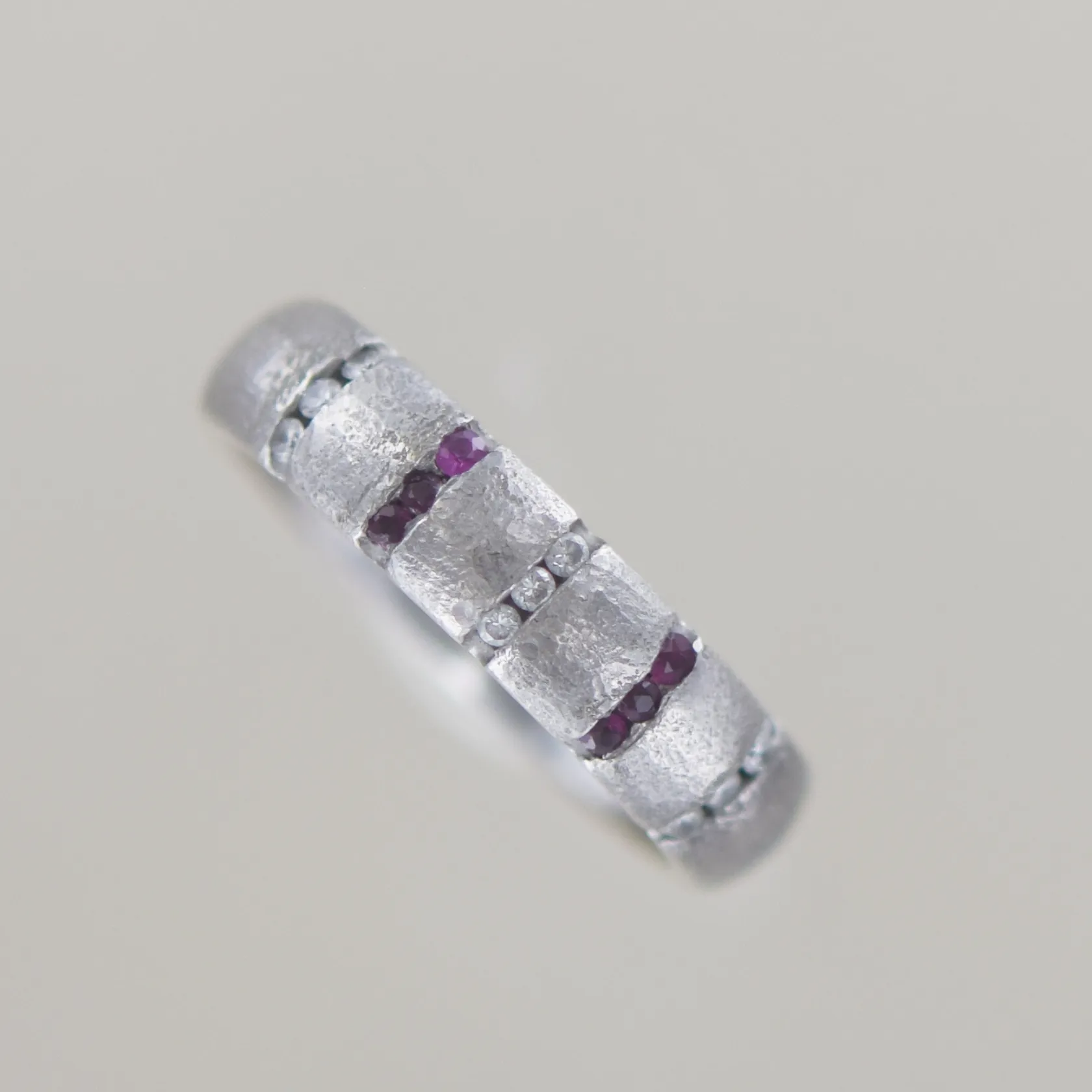 Ring med 9 diamanter 6 rubiner, Håkan Orrling Helsinborg, Ø 17 mm B 4,8mm, 18k Vikt: 8,4 g.
