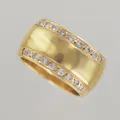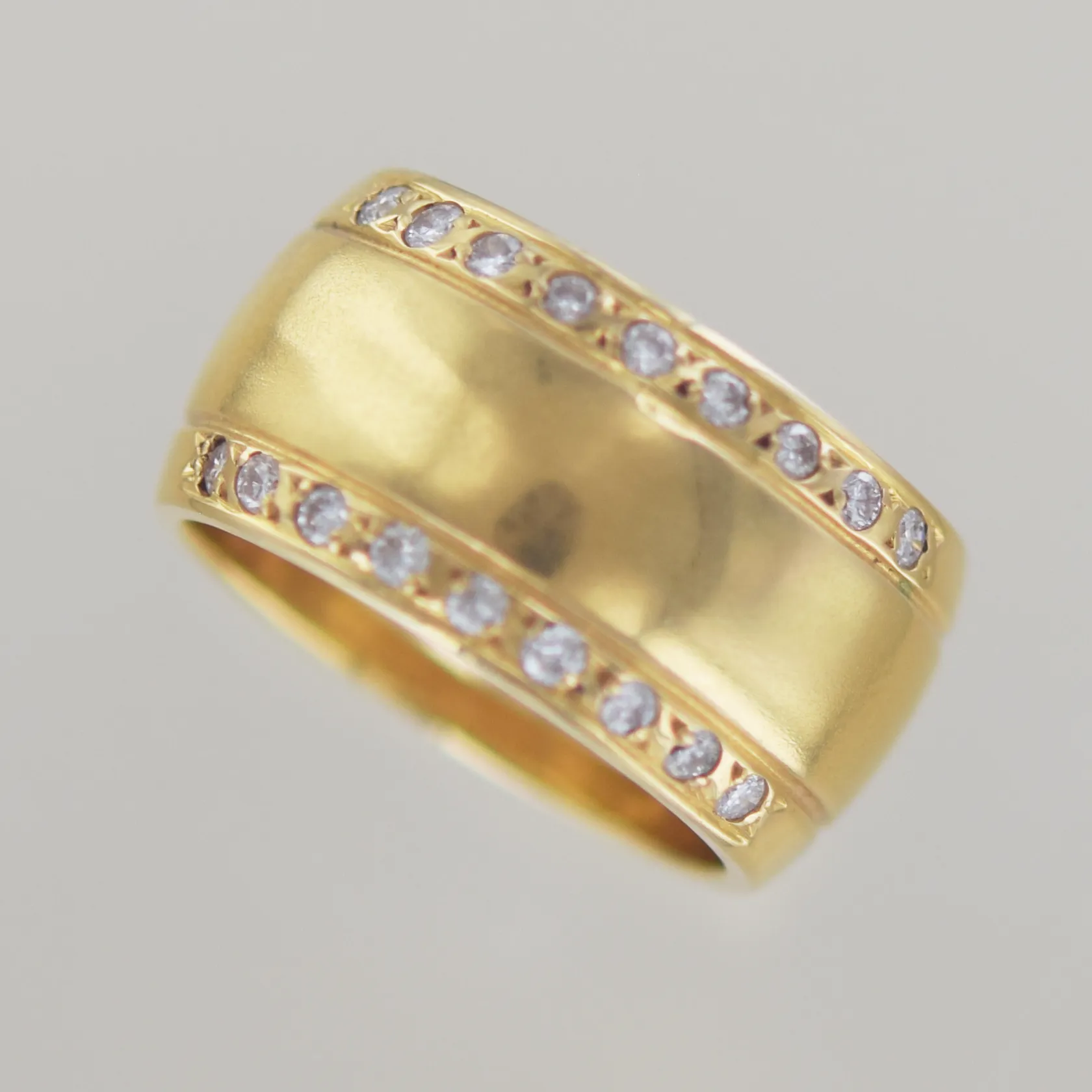 Ring med diamanter 18x0,02ct totalt 0,36ct av Bengt Turesson Falkenberg, Ø 18,5 mm B 12mm, 18k Vikt: 16,8 g.