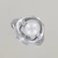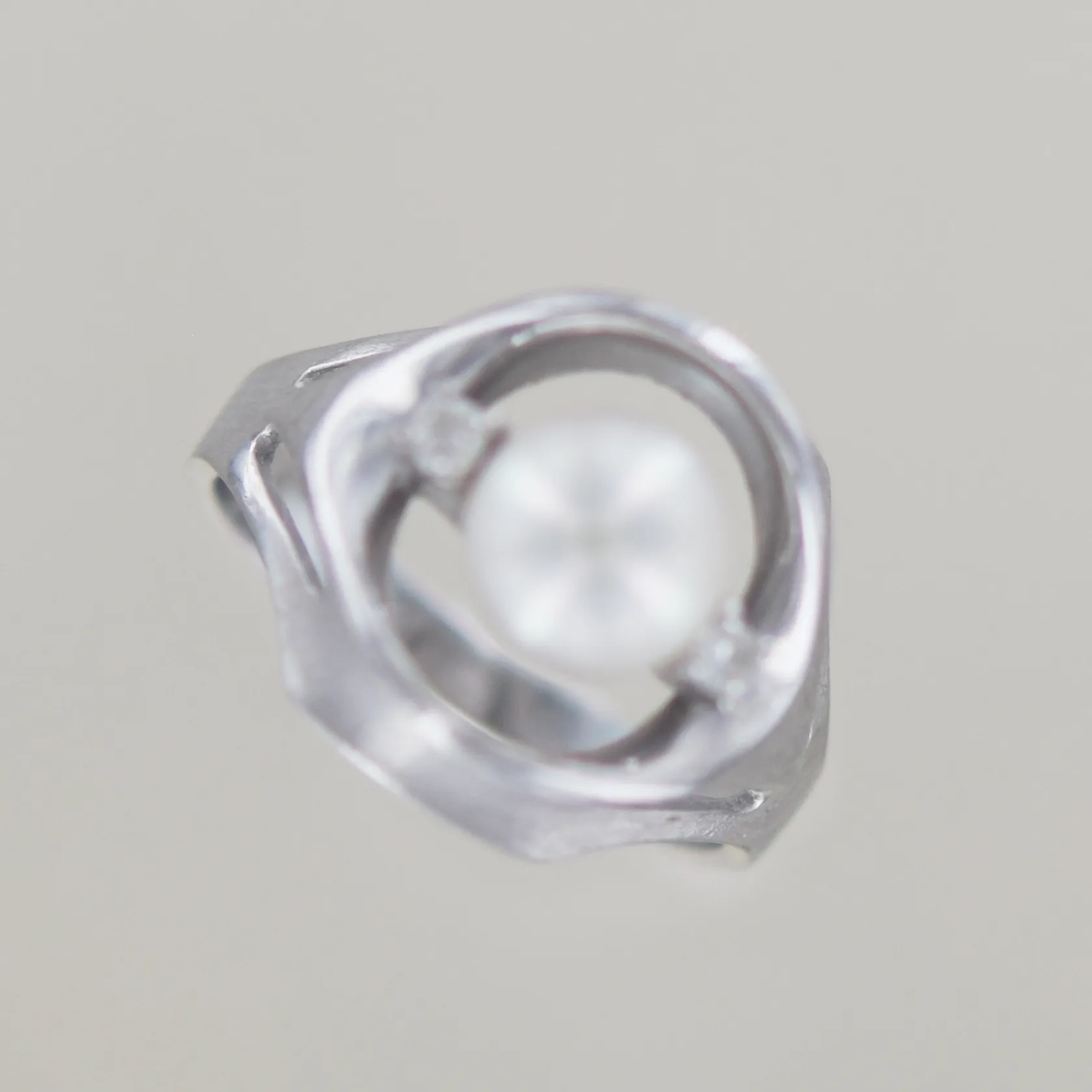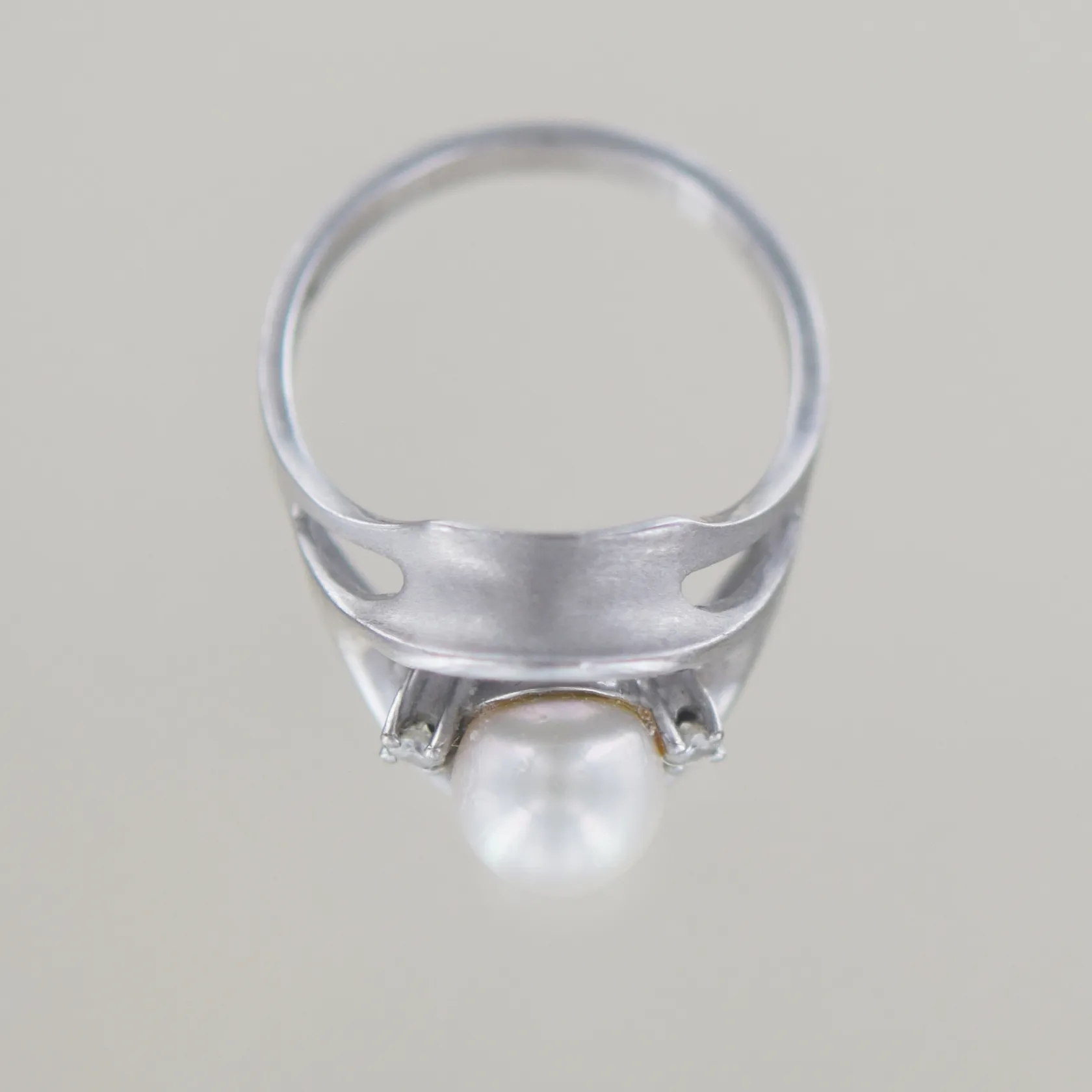 Ring med vit sötvattenpärla och 2 diamanter x 0,03ct Ø 18 mm B 3-16 mm 18k Vikt: 7,1 g.