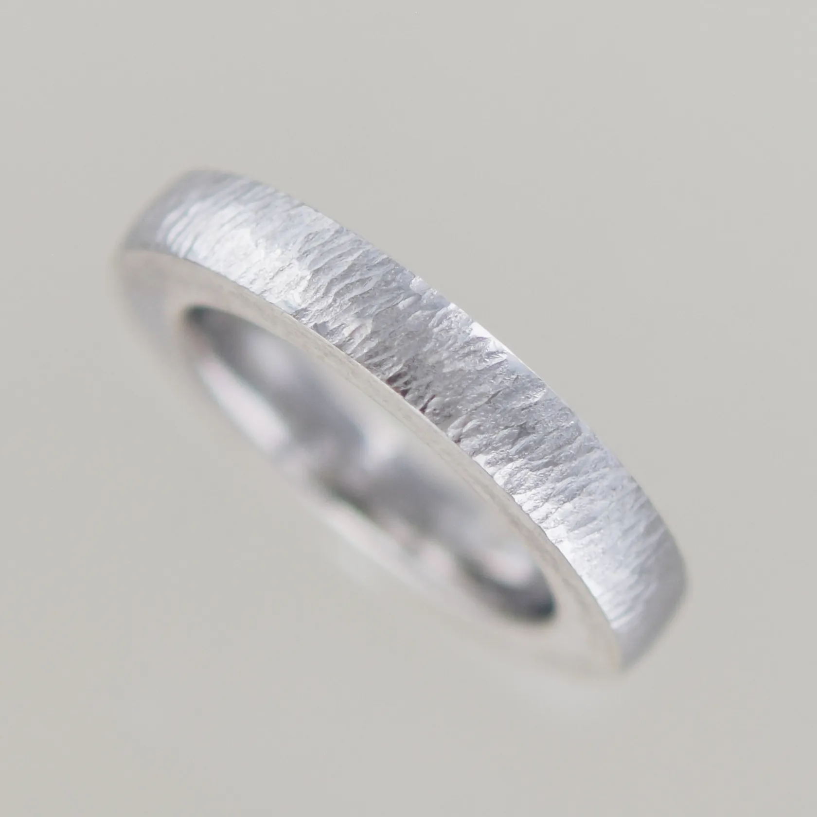 Vigselring platt frostad/blank GBA Ø 17mm B 4/4mm, vitguld 18k Vikt: 14,8 g.