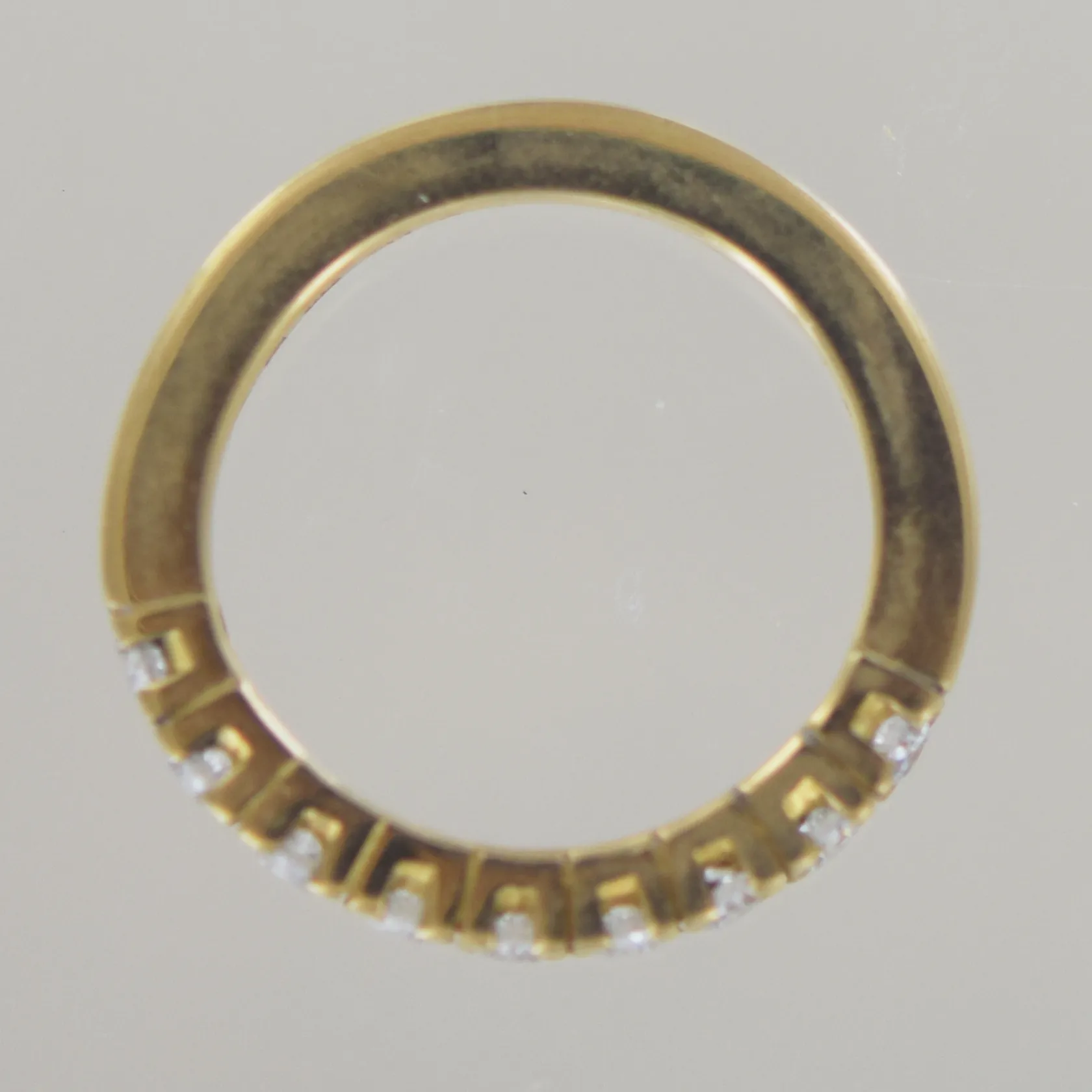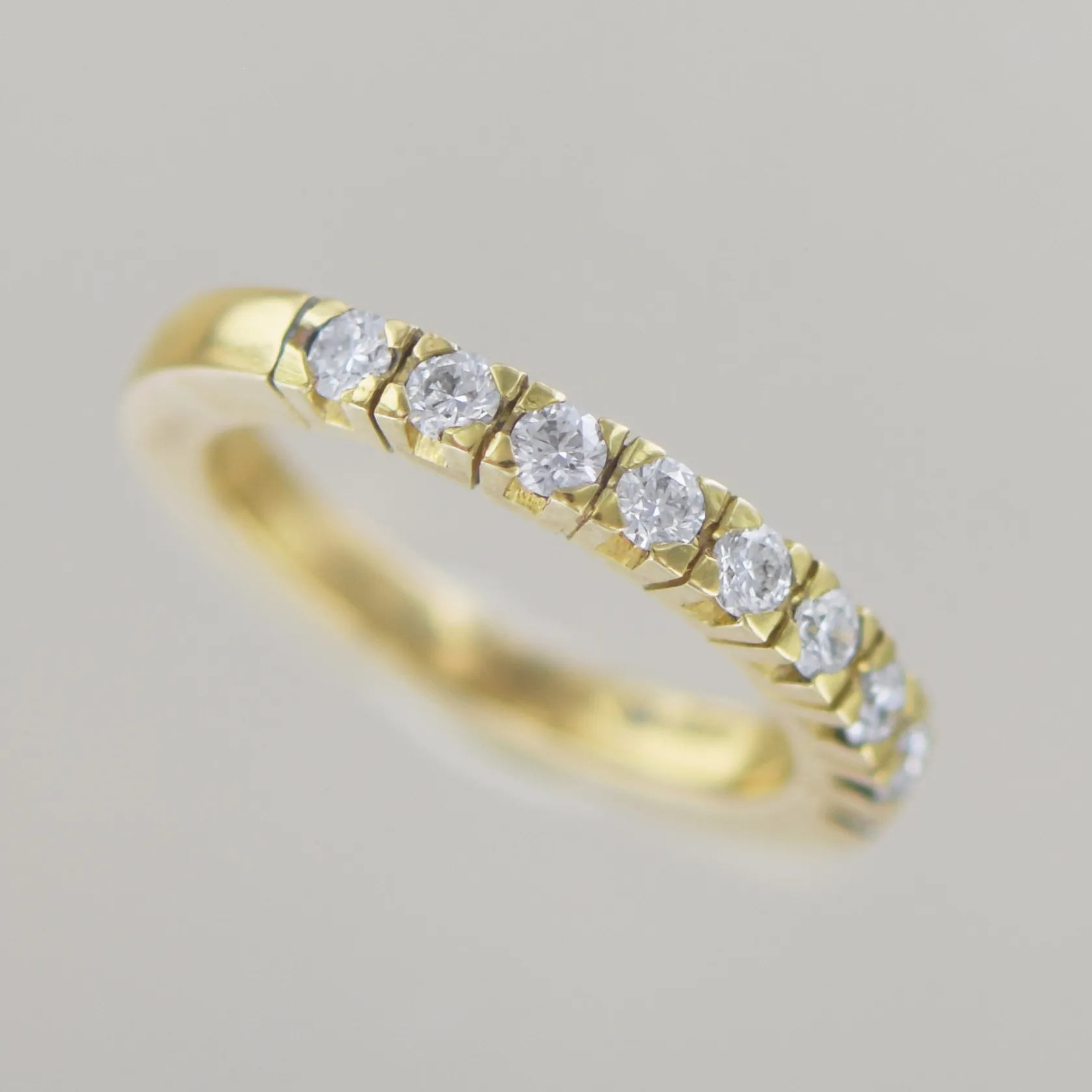 Alliansring av Håkan Orrling, 9 diamanter ca 0,63 ct, Top Wesselton / W, VVS, god slipning, Ø 18,5 mm B o H 3mm, 18k Vikt: 7,7 g.