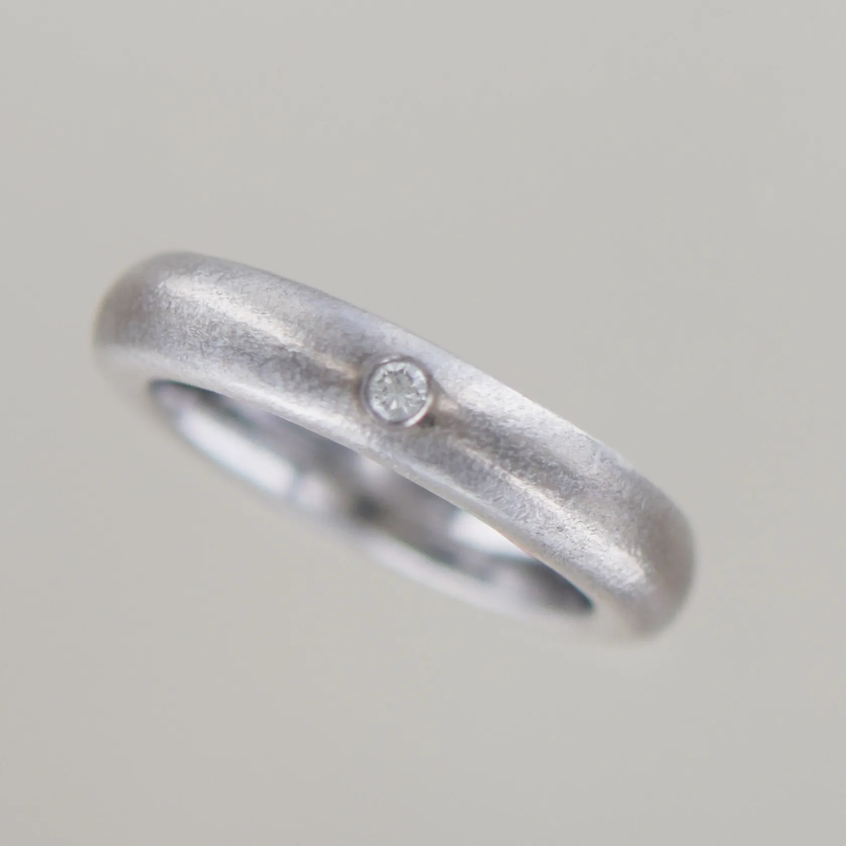 Vigselring frostad rundad skena med diamant 0,04ct, Ø 17mm B 4,6mm, vitguld 18k Vikt: 11,8 g.