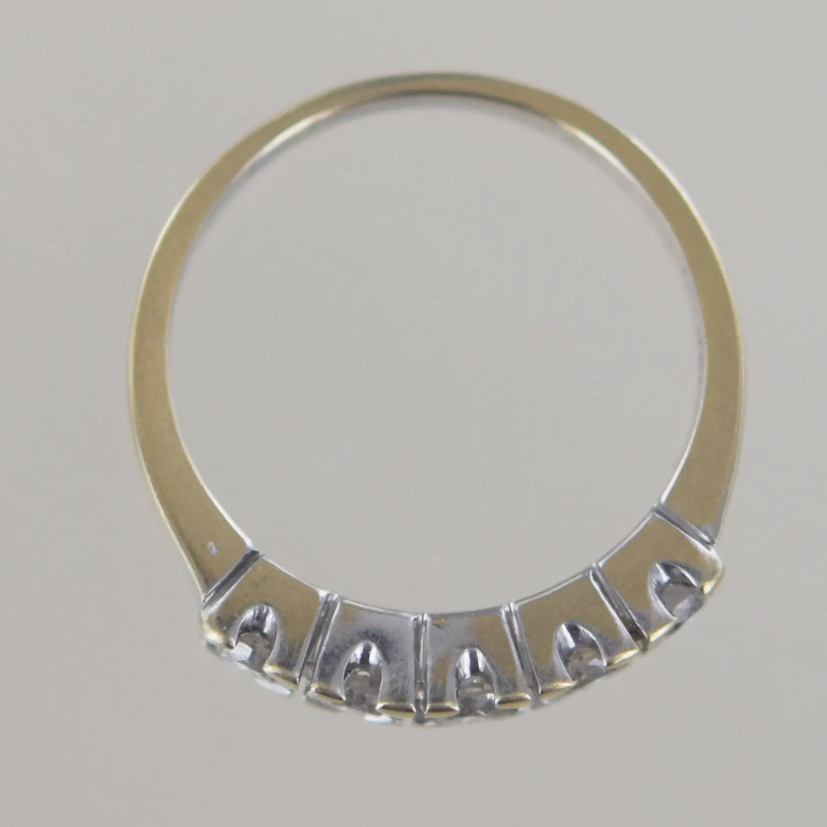 Alliansring med 5 diamanter totalt ca 0,35ct, Ø 17,25 mm, vitguld 18k. Behöver rodieras Vikt: 4,6 g.