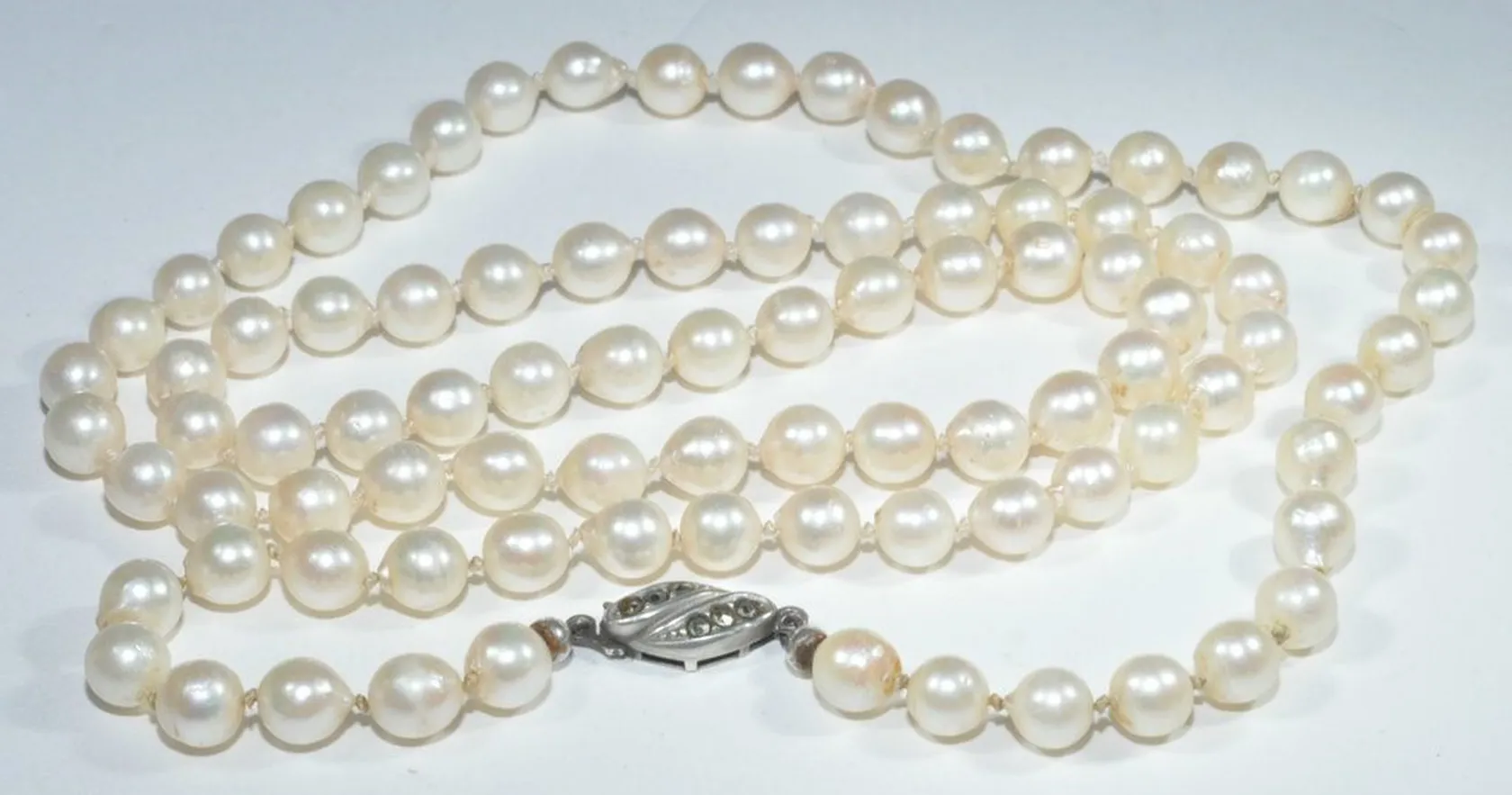 Pärlhalsband silverlås ,längd 69cm, bredd 6 mm, Vikt: 32,8 g.