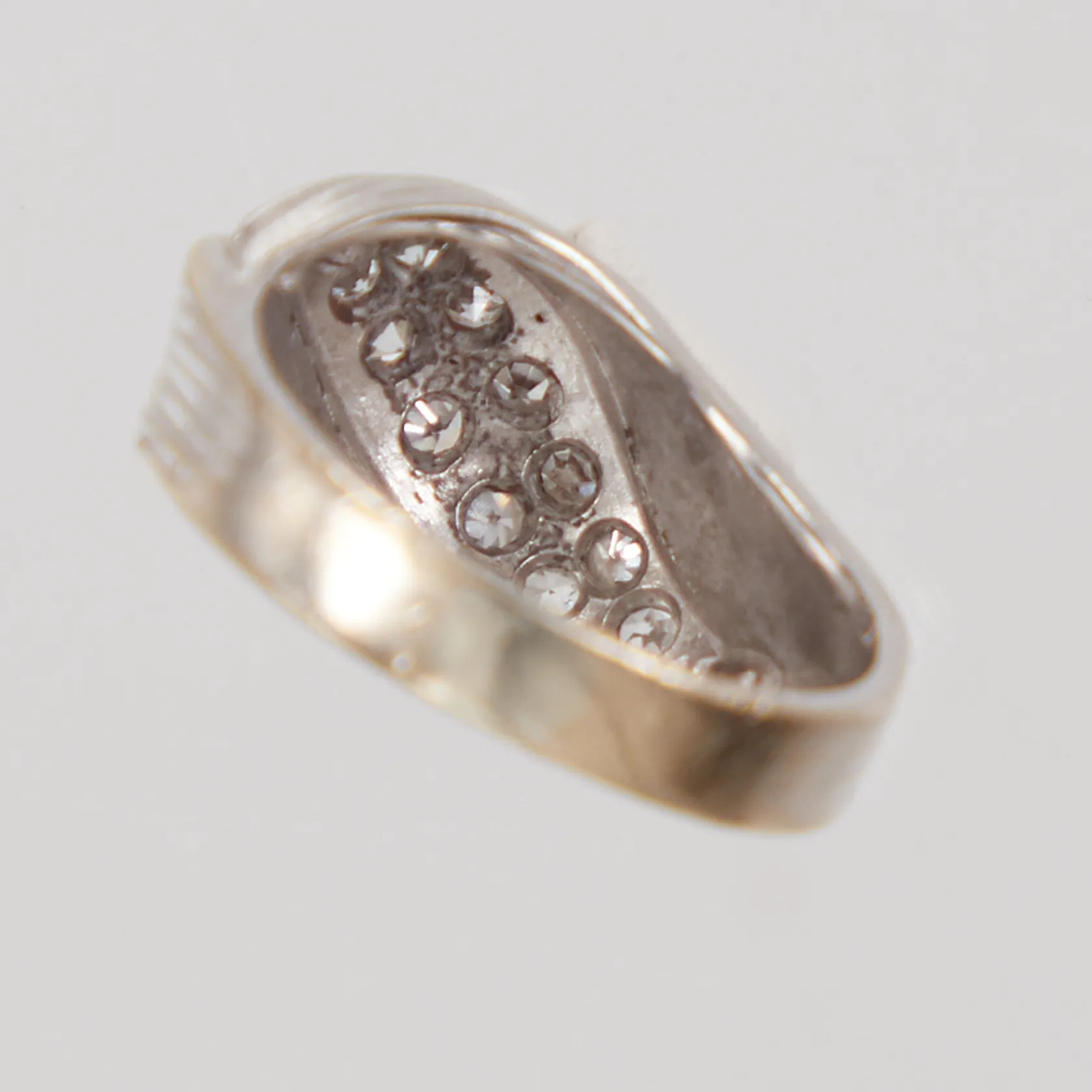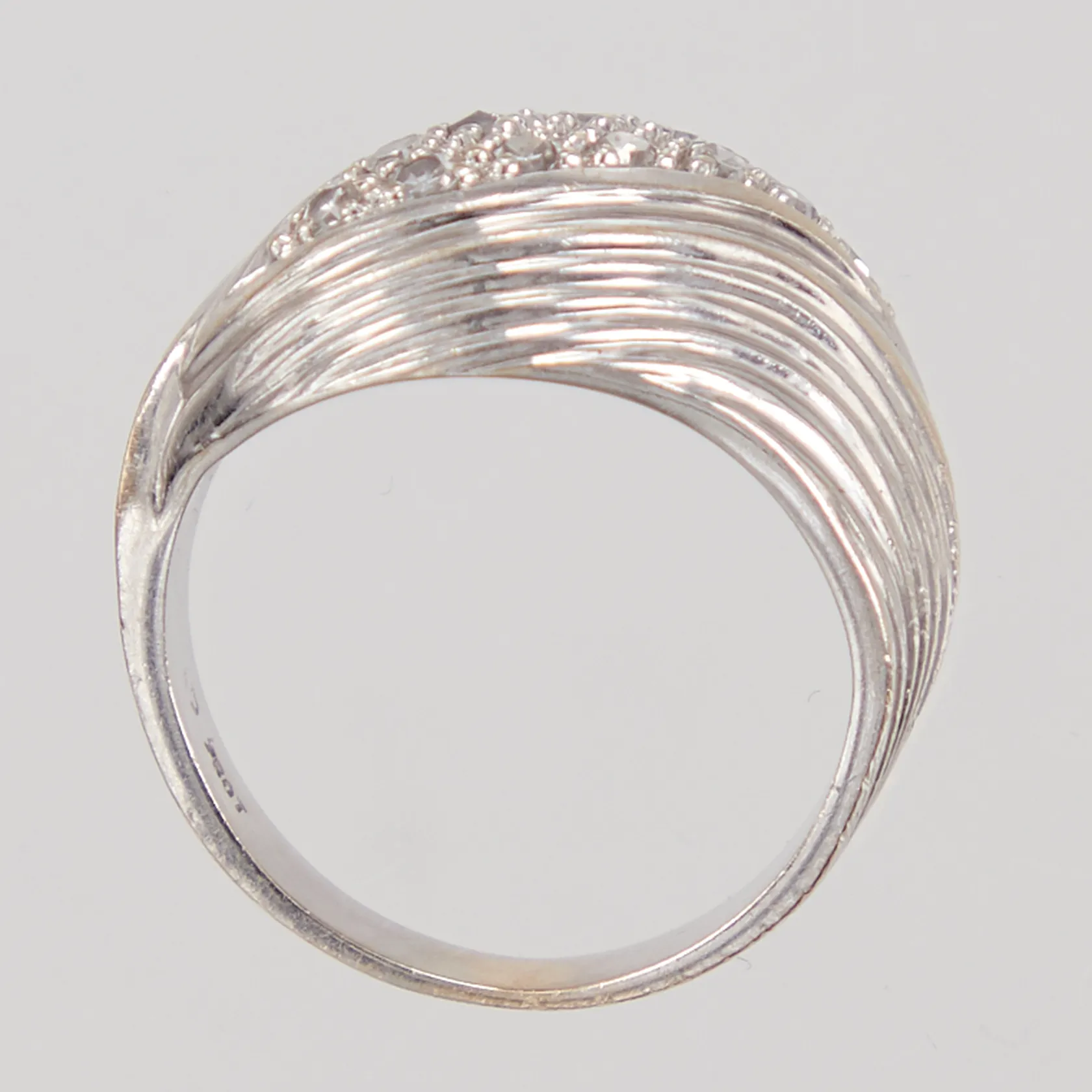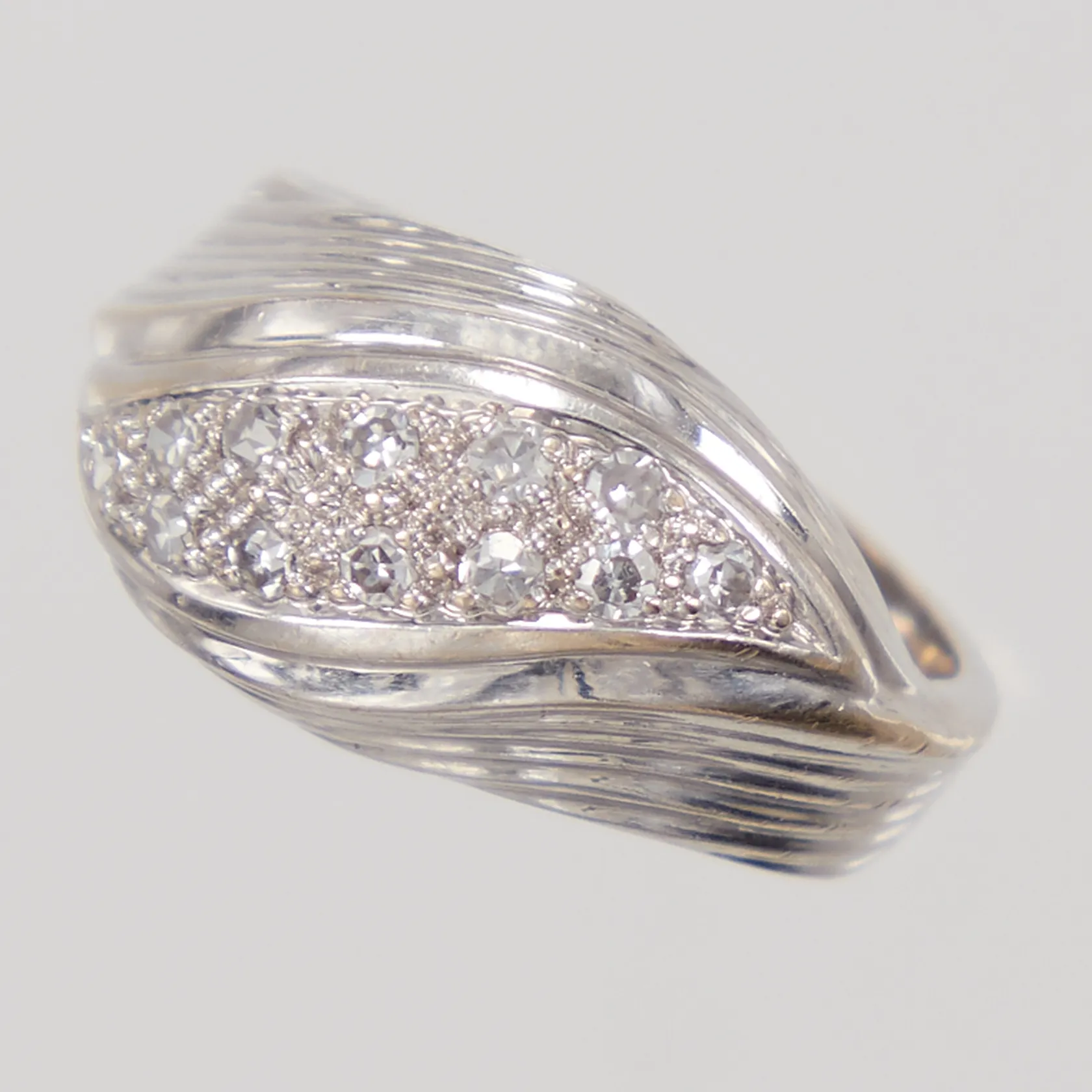 Ring stl 15¼, åttkantslipade diamanter 12x ca 0,01ct, bredd 3-10,4mm, vitguld, 18K Vikt: 5,1 g.