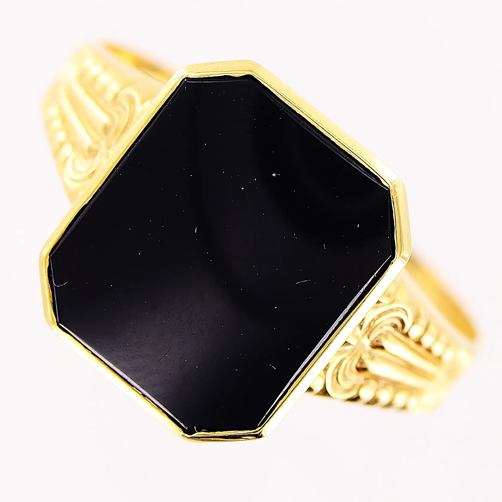 Klackring, svart sten, stl 20¼, bredd 2,5-13mm, 18K. Vikt: 3,2 g.