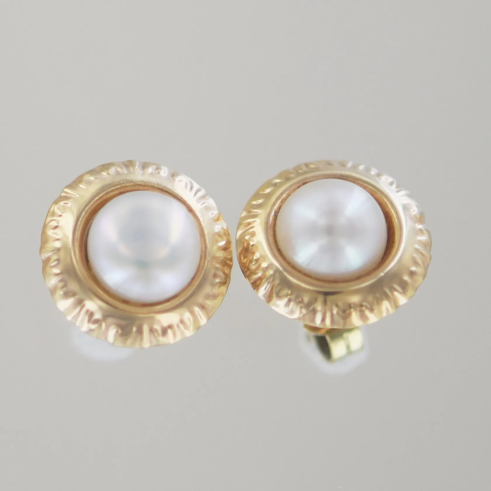 Örhängen med pärla, B 10 mm, 14k, ploppar olika färger av guld Vikt: 1,6 g.
