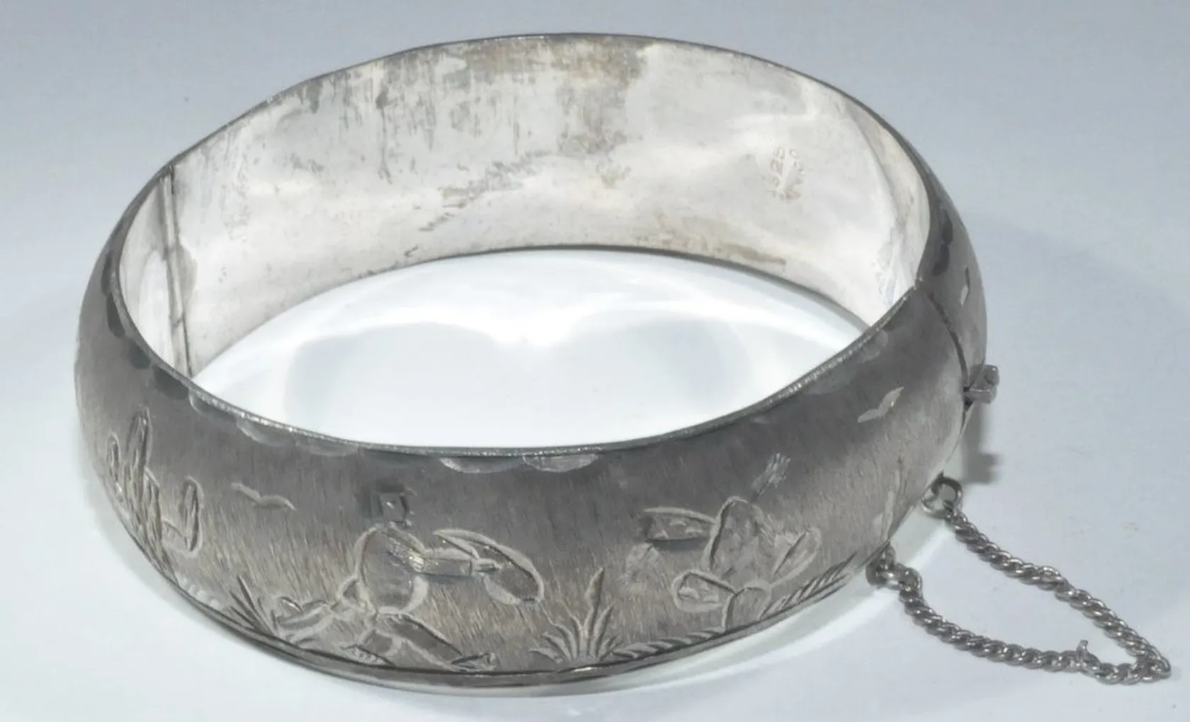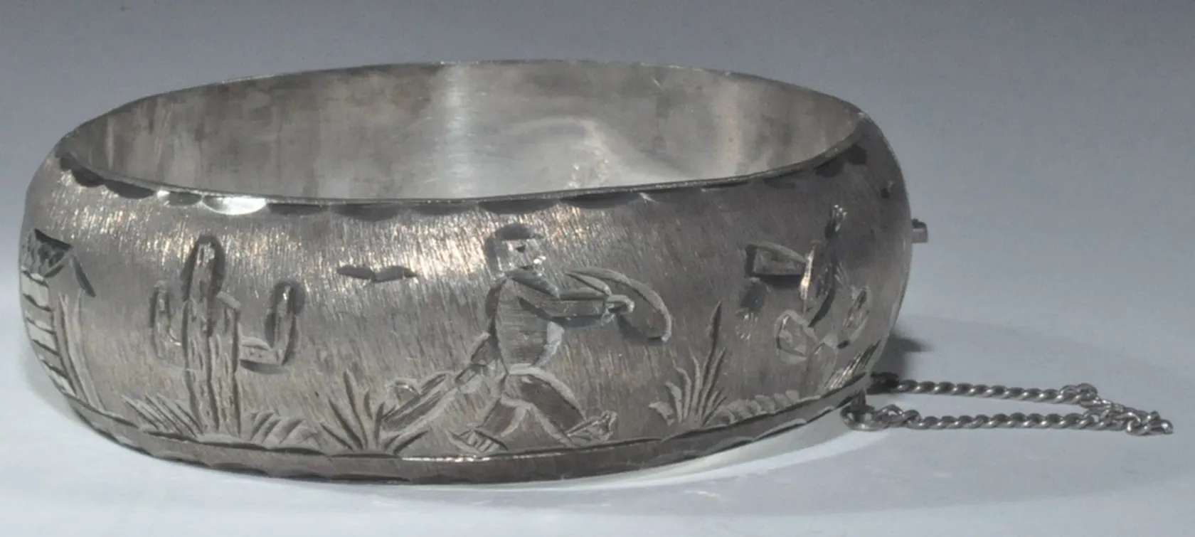 Armring öppnbar + 1 par örh Mexico , omkr 17,5 cm Ø 3,3 cm ,SILVER 925/1000 Vikt: 38,6 g.
