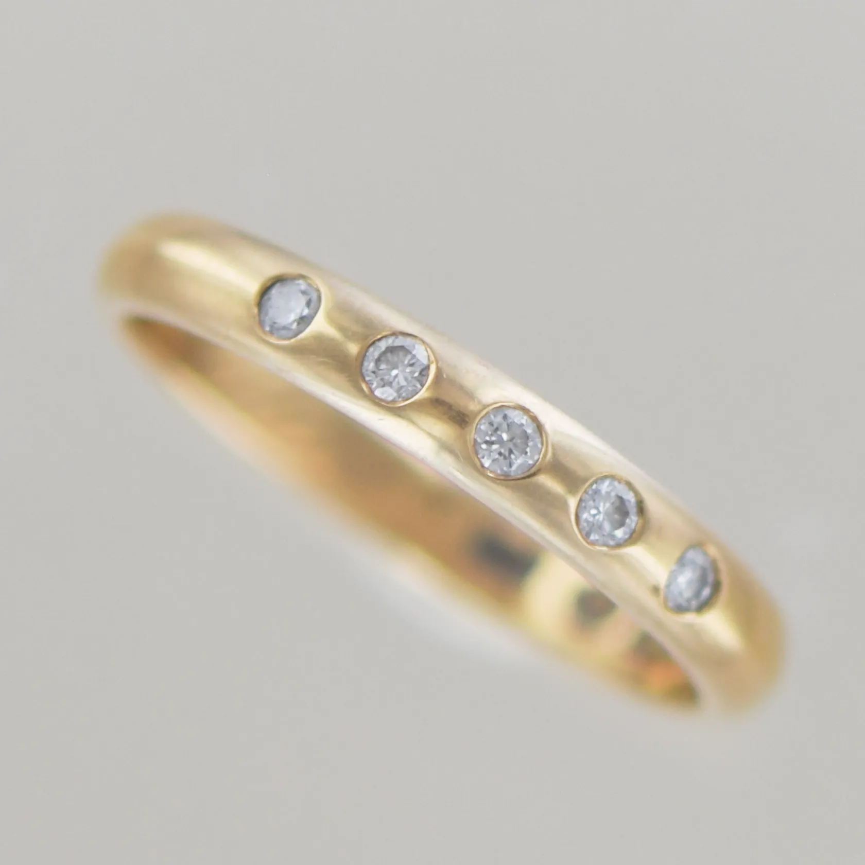 Ring, allians, med 5 diamanter ca 0,10 ct, Ø 19,5 mm, 18k graverad Vikt: 4,3 g.