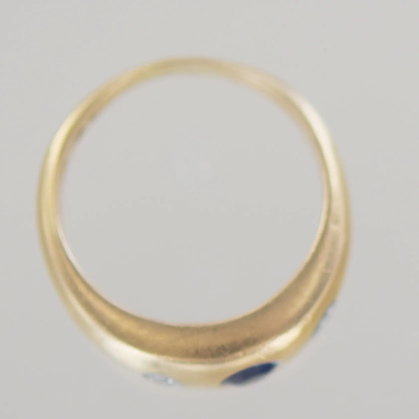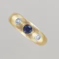 Ring med 2 diamanter och 1safir, Ø 17,5 mm, B 3-7 mm 18k Vikt: 7,8 g.