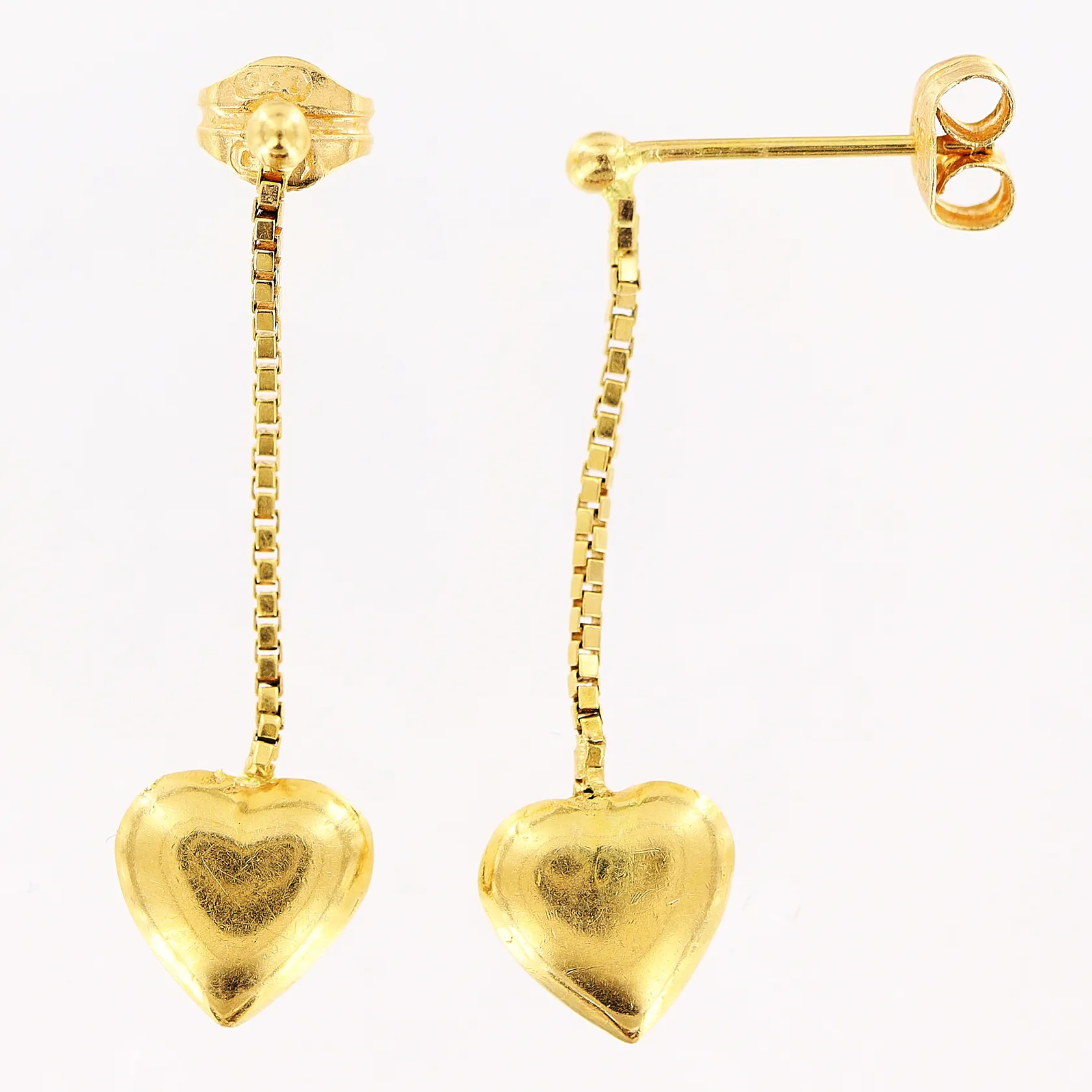 Ett par örhängen, hjärtan, 29mm, bredd 1-8mm, skevheter på ett örhänge, 18K. Vikt: 3,3 g.
