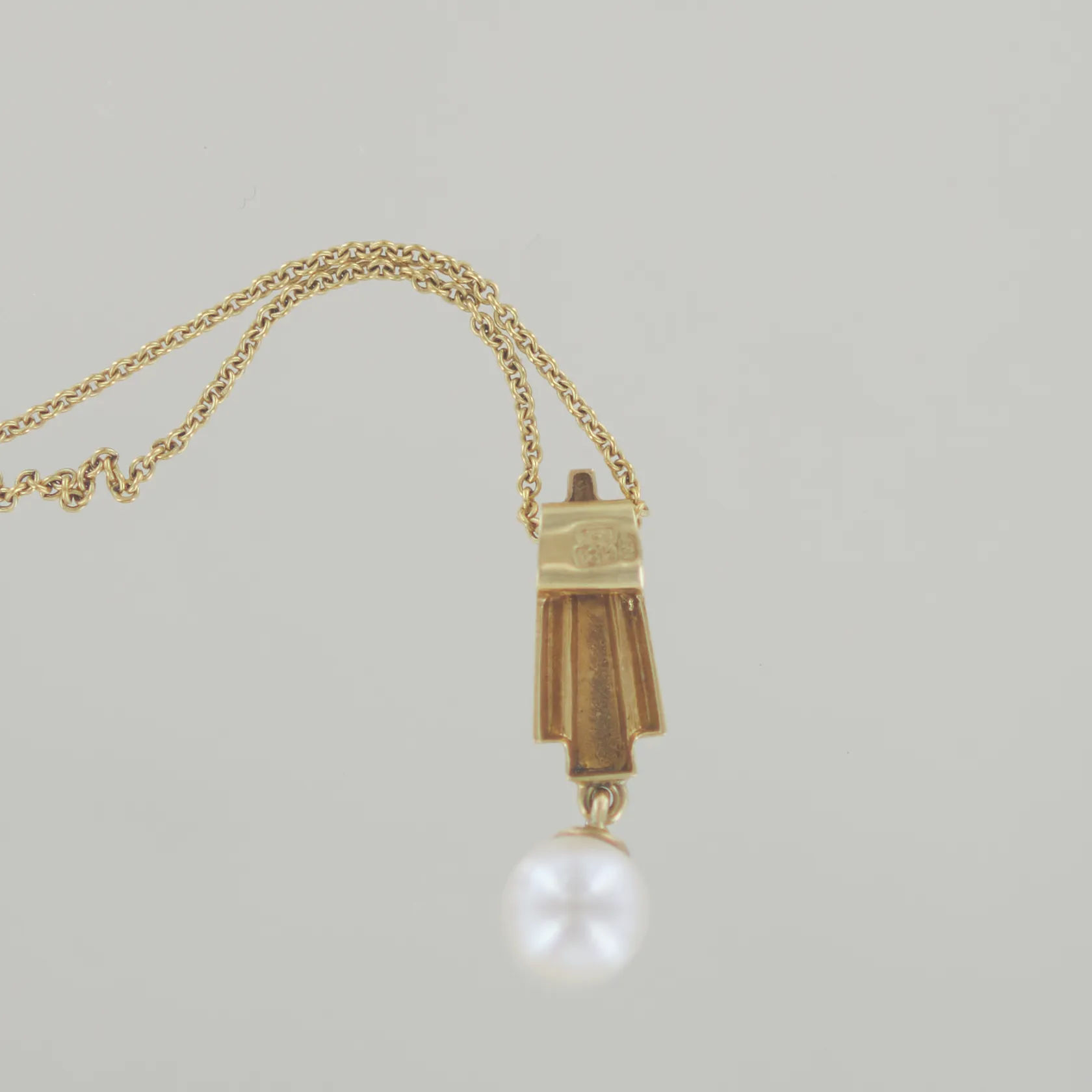 Kedja med pärlhänge L 44 cm18k Vikt: 4 g.