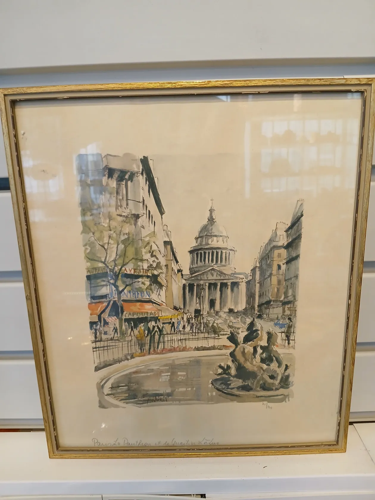 Färglitografi sign Herbelol, titel Paris le Pantheon, upplaga 21/90, innermått 31x37cm Skickas med postpaket.