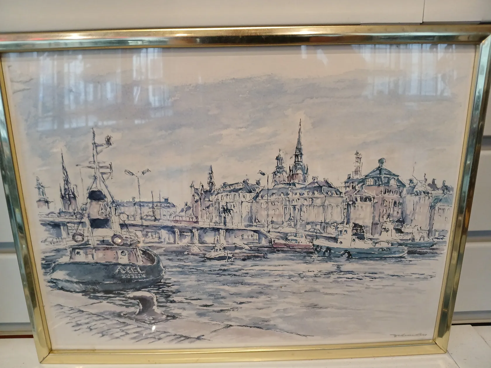 Akvarell okänd konstnär, motiv Stockholm Gamla stan, 40x30cm Skickas med postpaket.