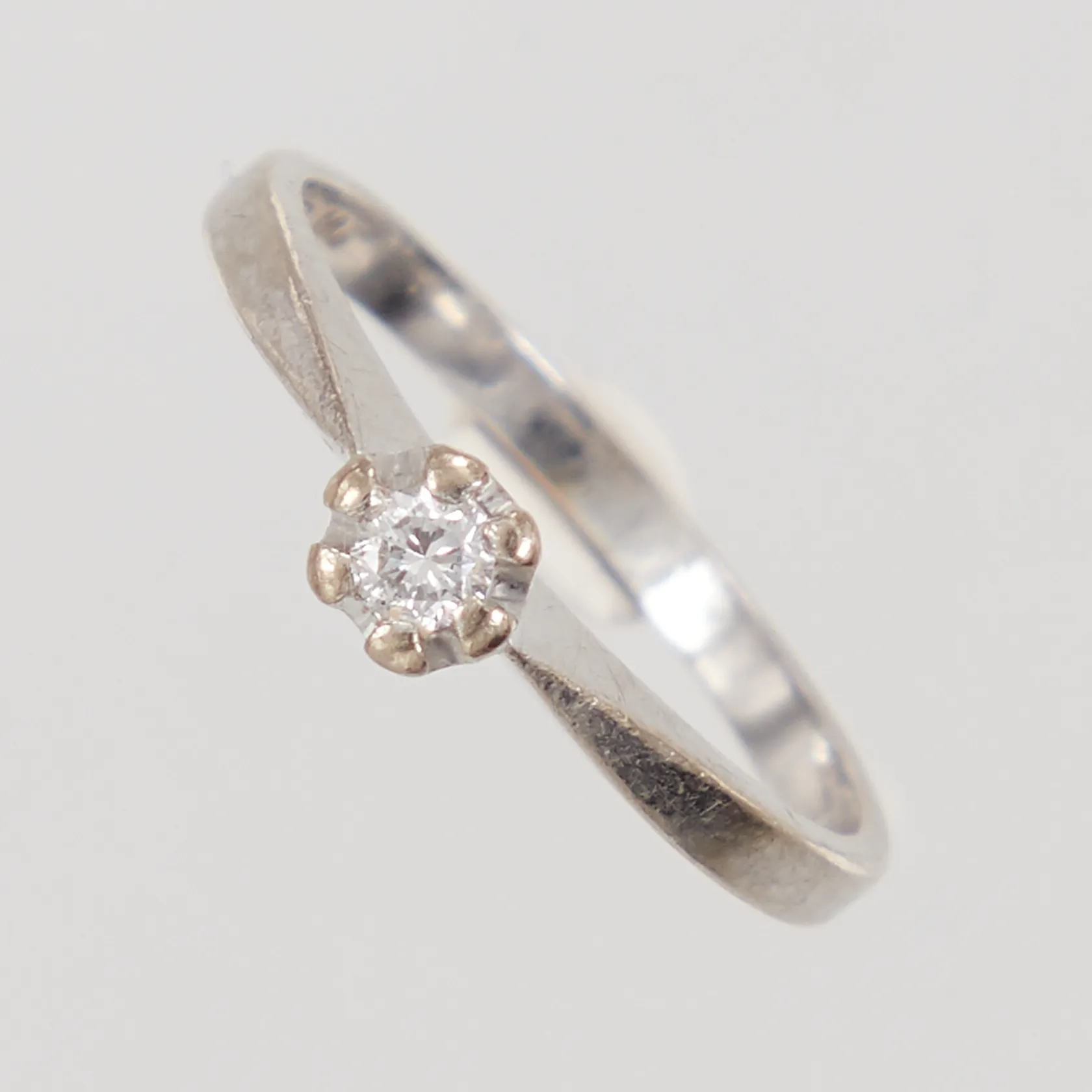 Ring, stl 17, bredd 2mm, diamant 1x010ct, inneslutningar, GFAB, vitguld, 18K Vikt: 2,6 g.