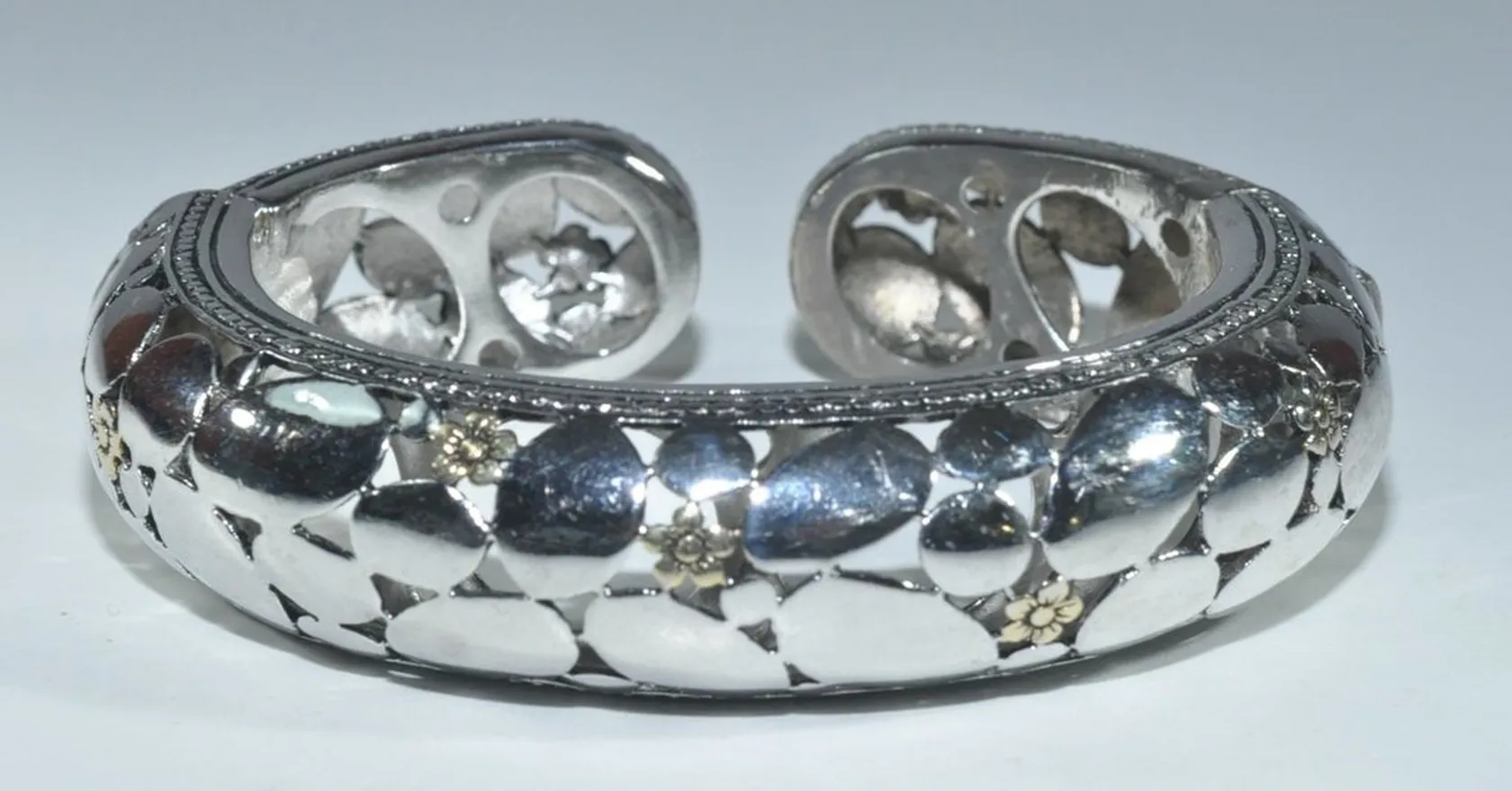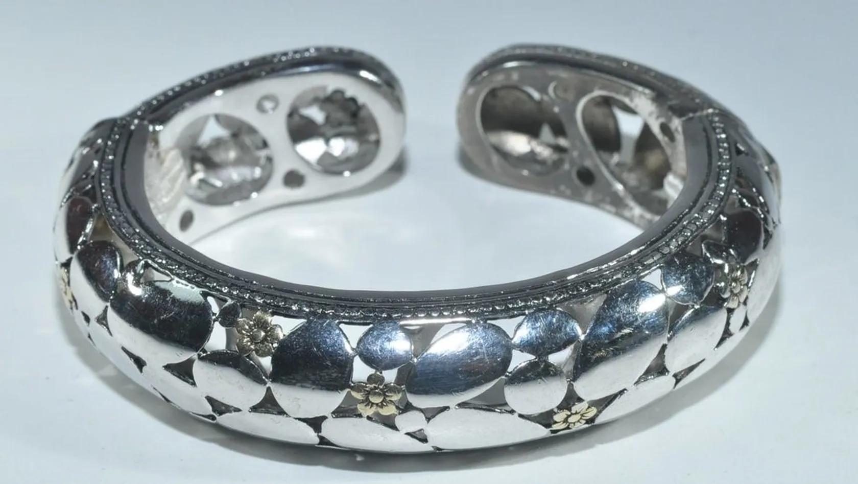 Armring def , Ø 58 mm Breed 18 mm, Obs saknas en pigg som håller den rörliga delen , silver Vikt: 59,9 g.
