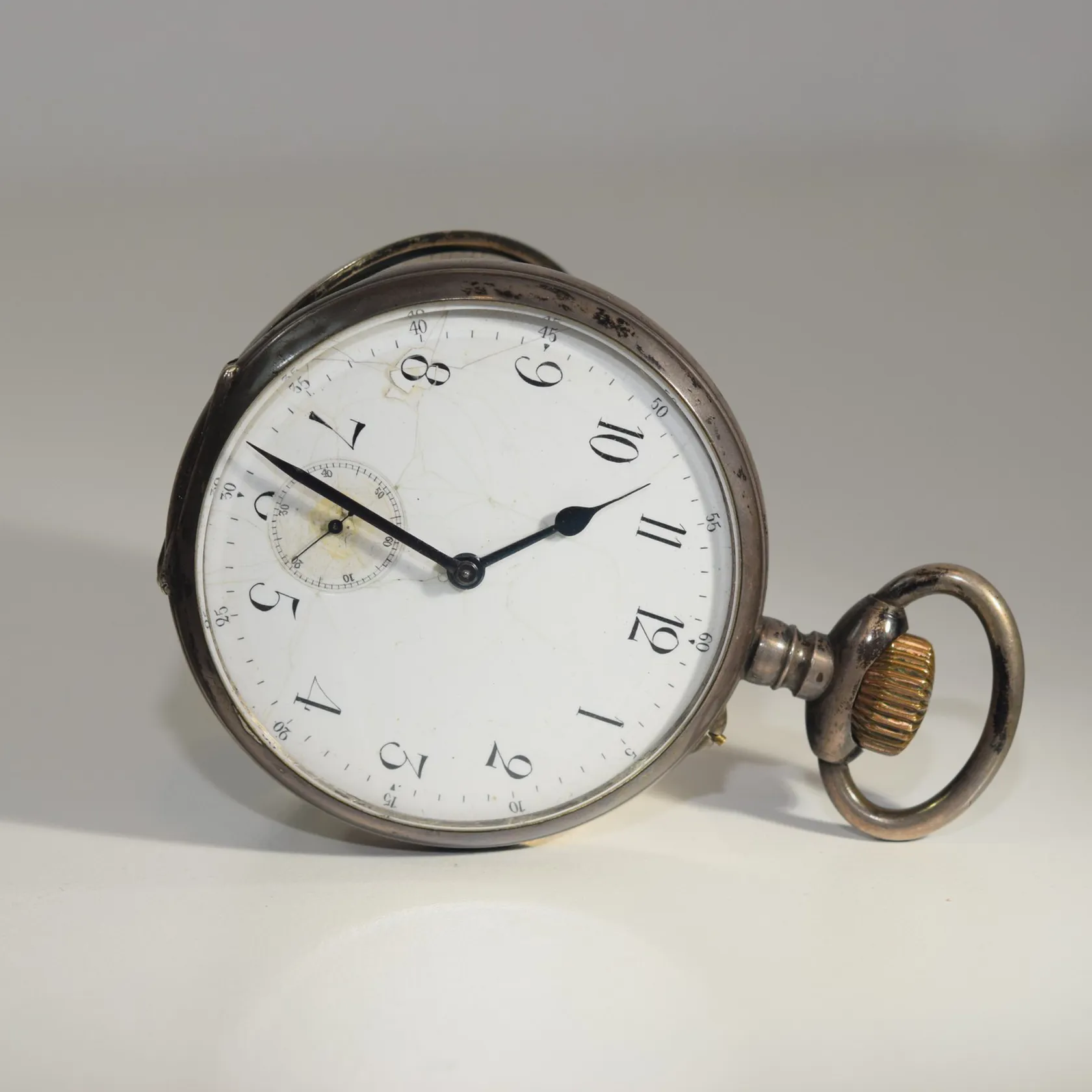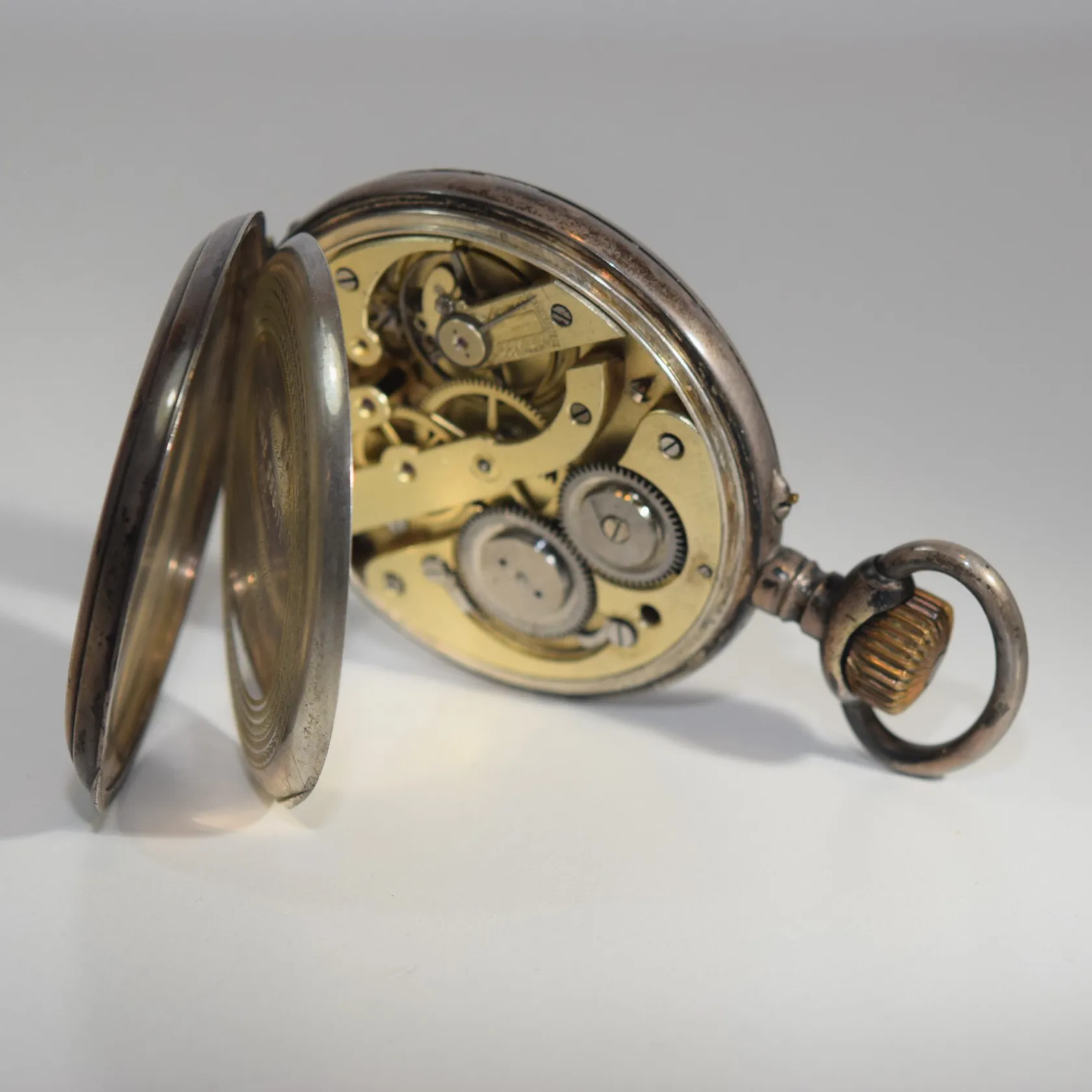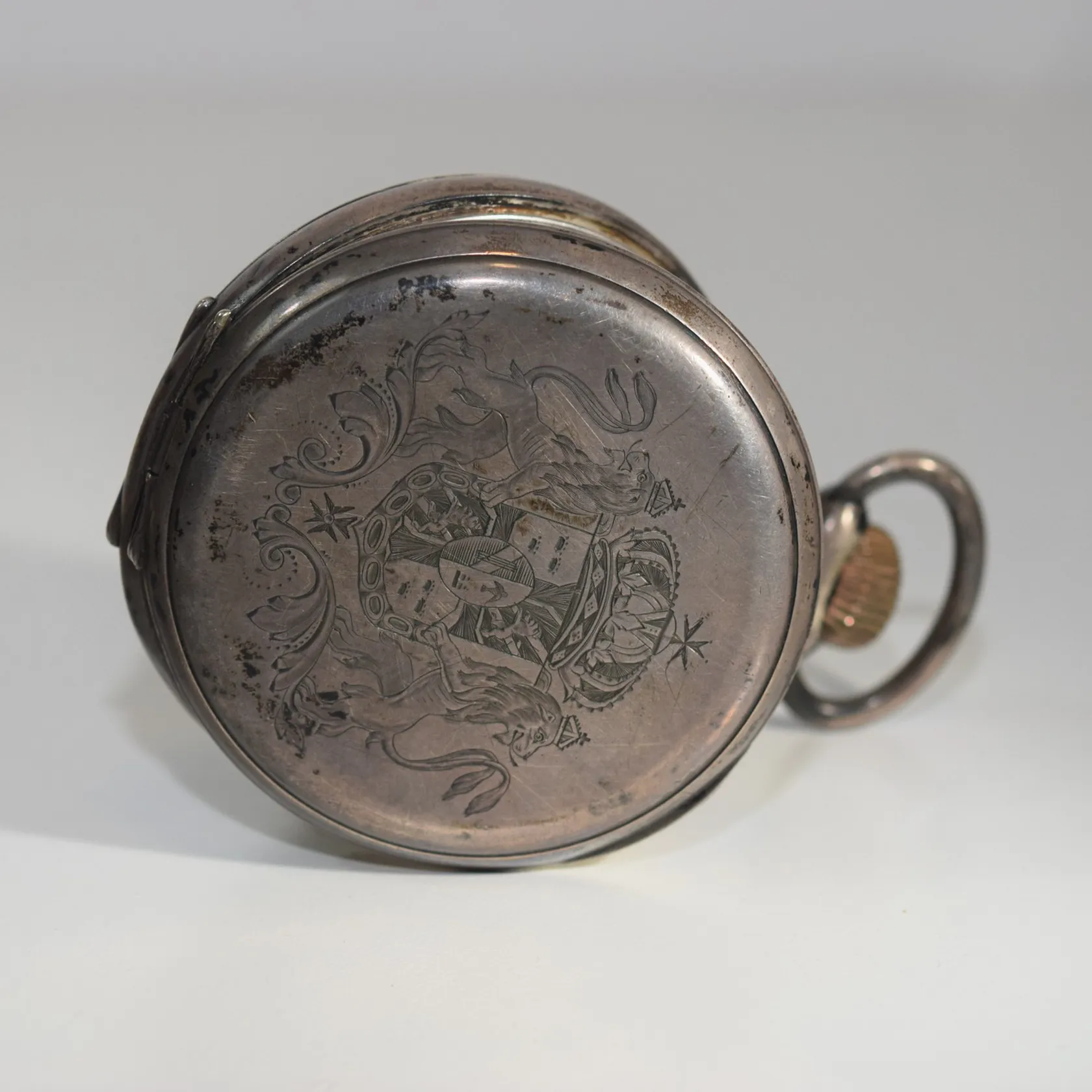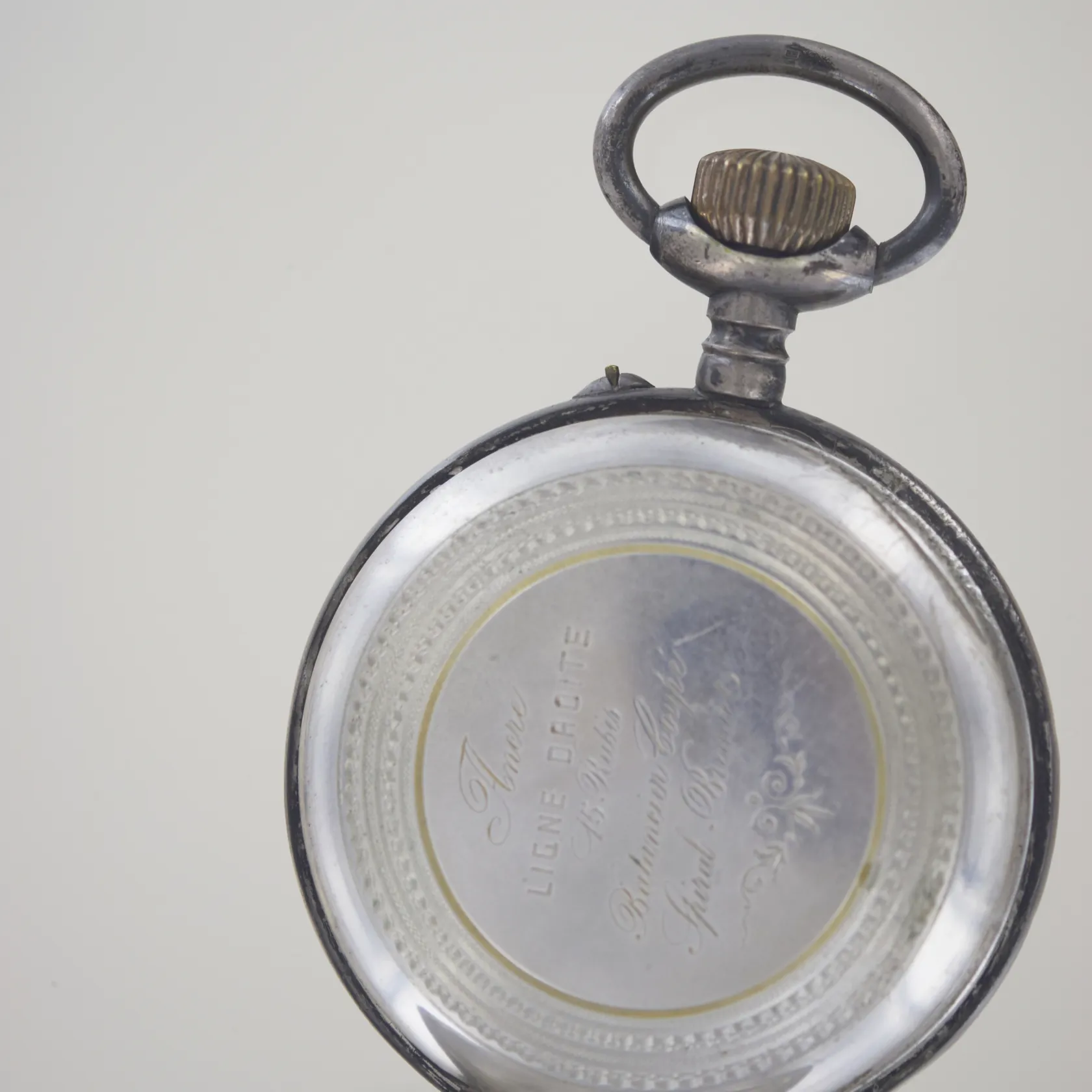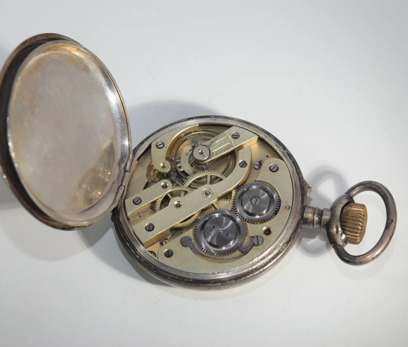 Fickur Silver 800 i såväl ytter- som innerlock Baksidans boett med graverat svenska riksvapnet. Innerlocket graverat med text Ancre ligne droite mm se bild Diameter 7 cm Fungerar, vi lämnar ingen funktionsgaranti. Vikt: 286 g.