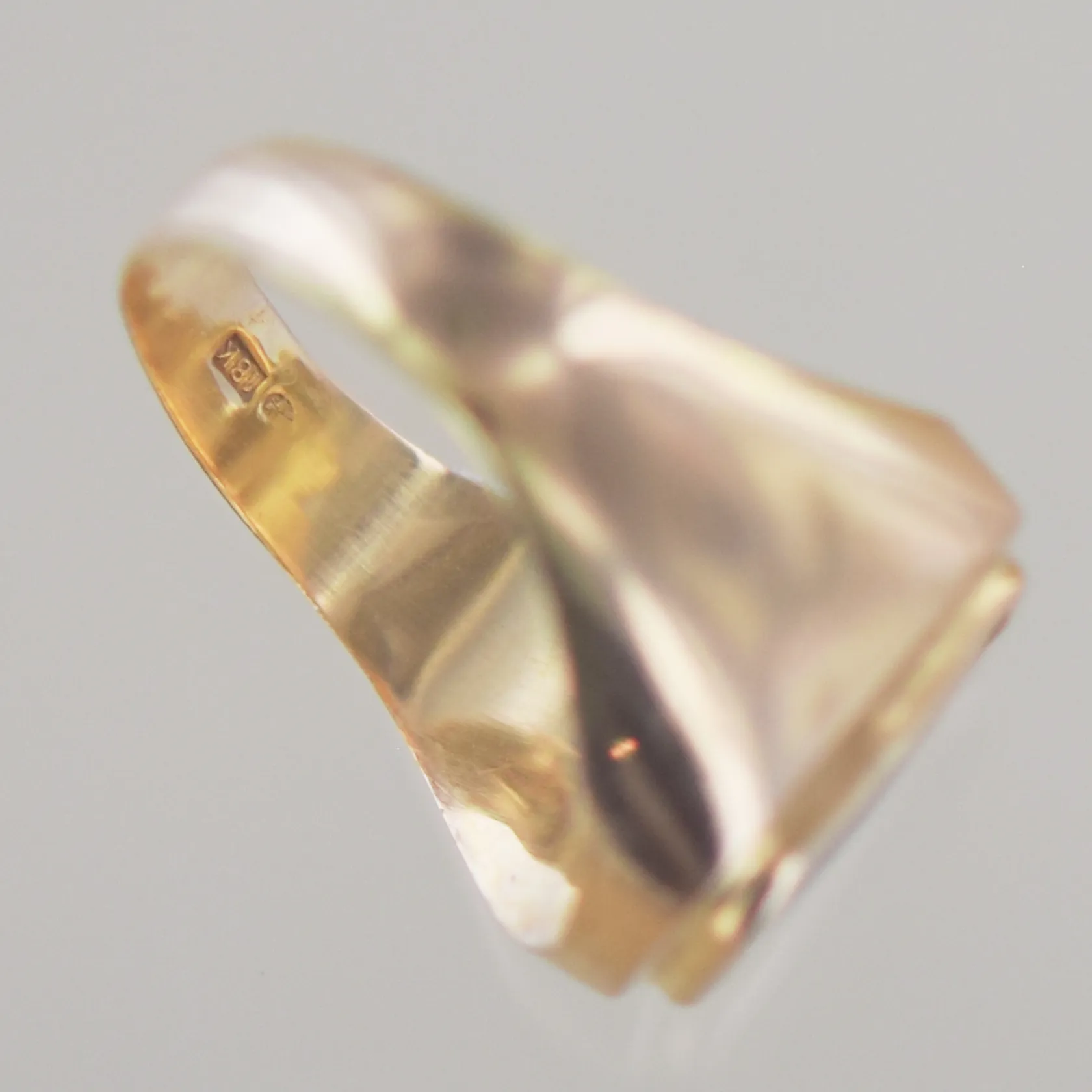 Klackring med brun sten Ø 20,5 mm klackens bredd 17 mm, små repor och bucklor. repor på stenen 18k Vikt: 5,2 g.