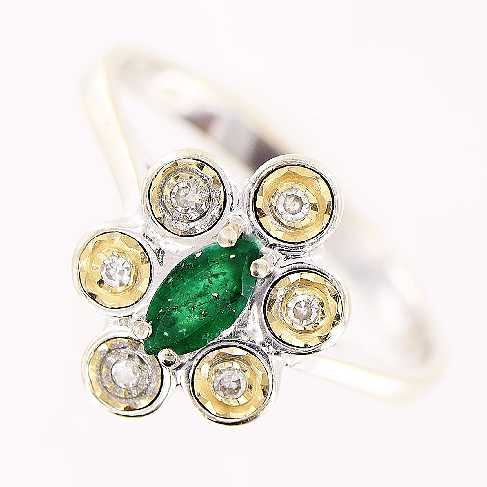Ring, diamanter 6 x ca 0,01ct, stl 16½, bredd 2-12mm, nagg i sten, vitguld, 18K Vikt: 3,1 g.