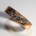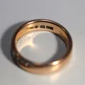 Ring med 9 diamanter 0,01-0,05ct , Ø 16½ bredd 4,8 mm, graverad datum, 18K 5,7 g Vikt: 5,7 g.