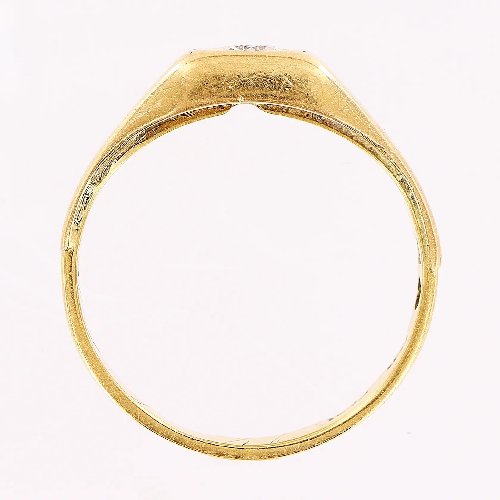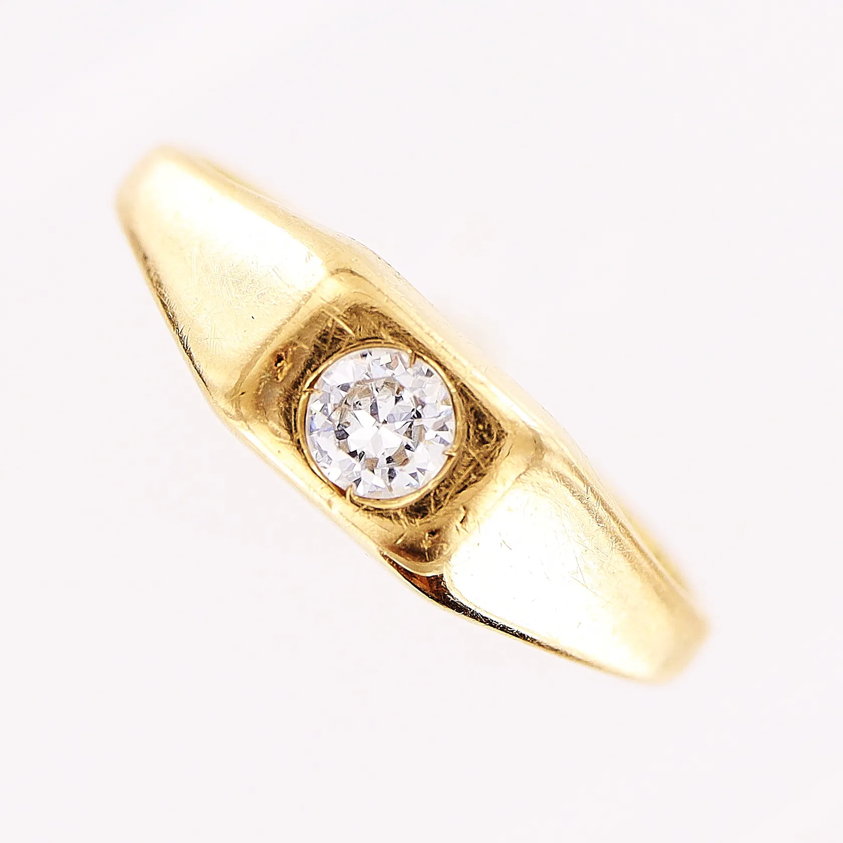 Ring, briljantslipad diamant ca 0,18ct, stl 16¾, bredd 2-5,5mm, mindre hack i skenan, 18K Vikt: 3,6 g.