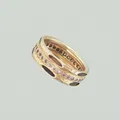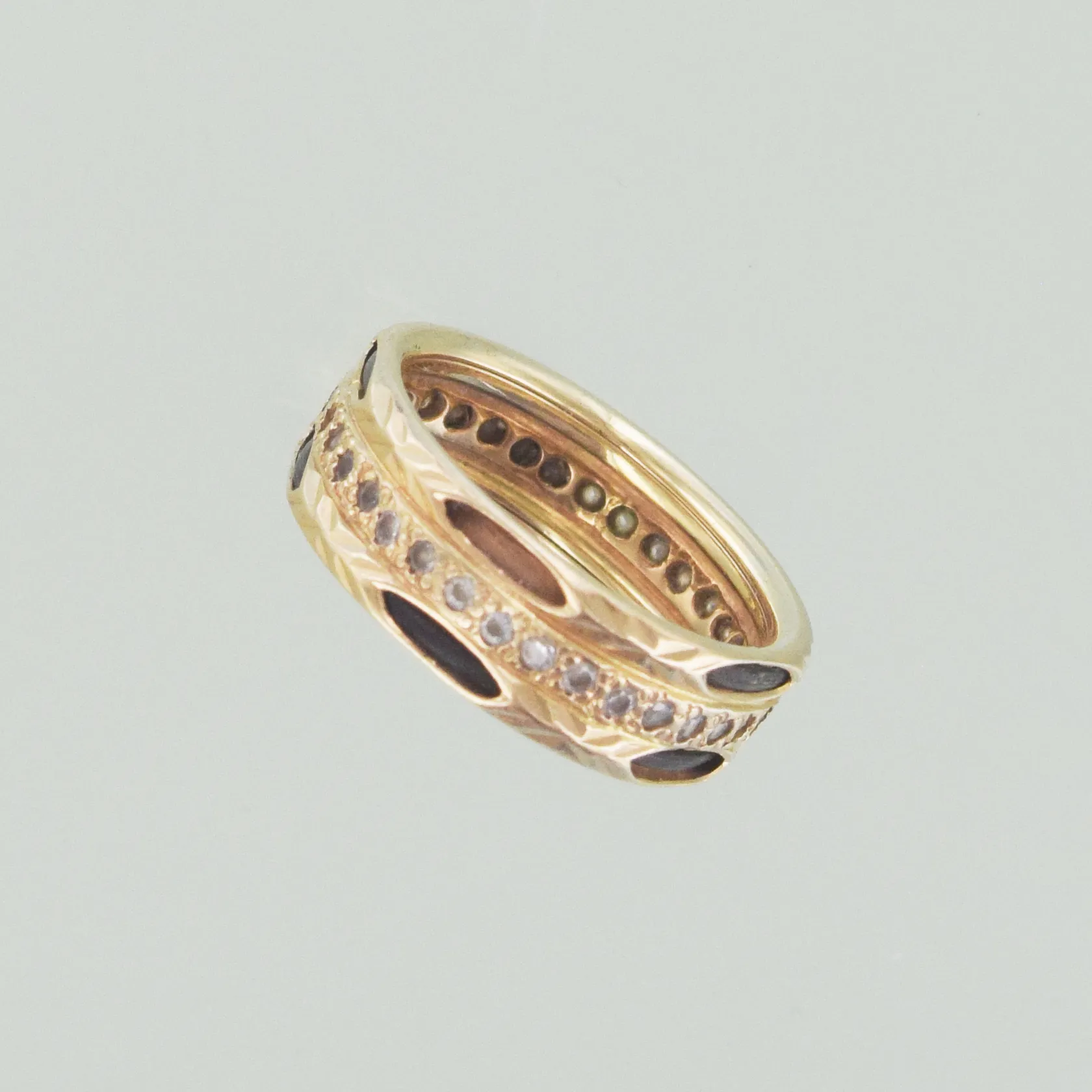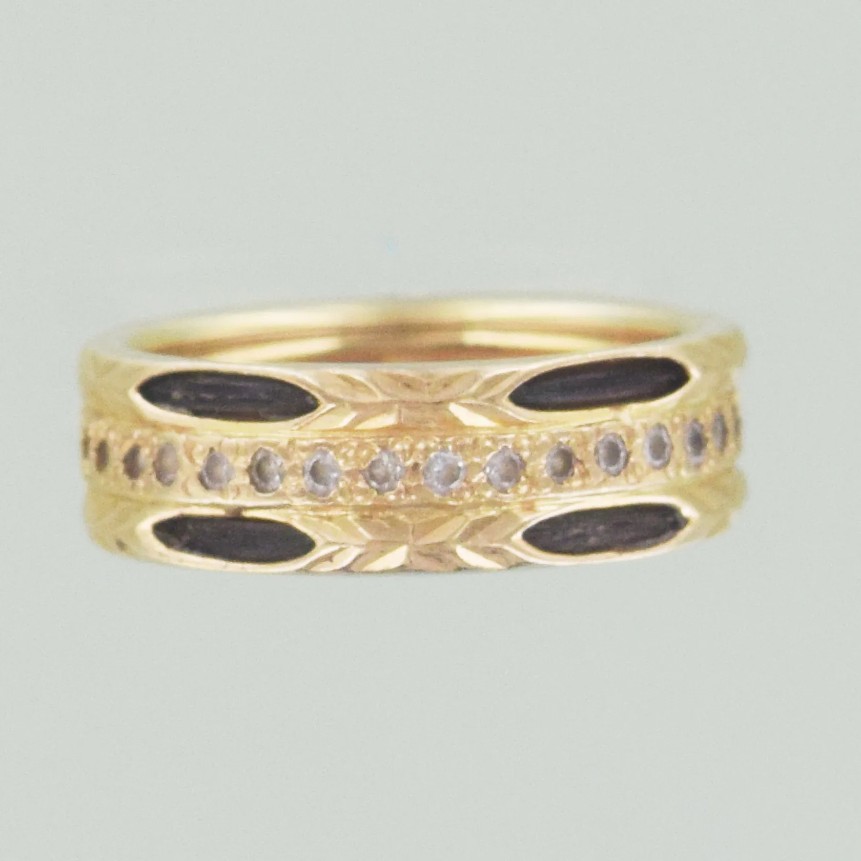 Ring med stenar, Ø 16¾, bredd 6 mm, saknas svart sten, 14K Vikt: 3,7 g.
