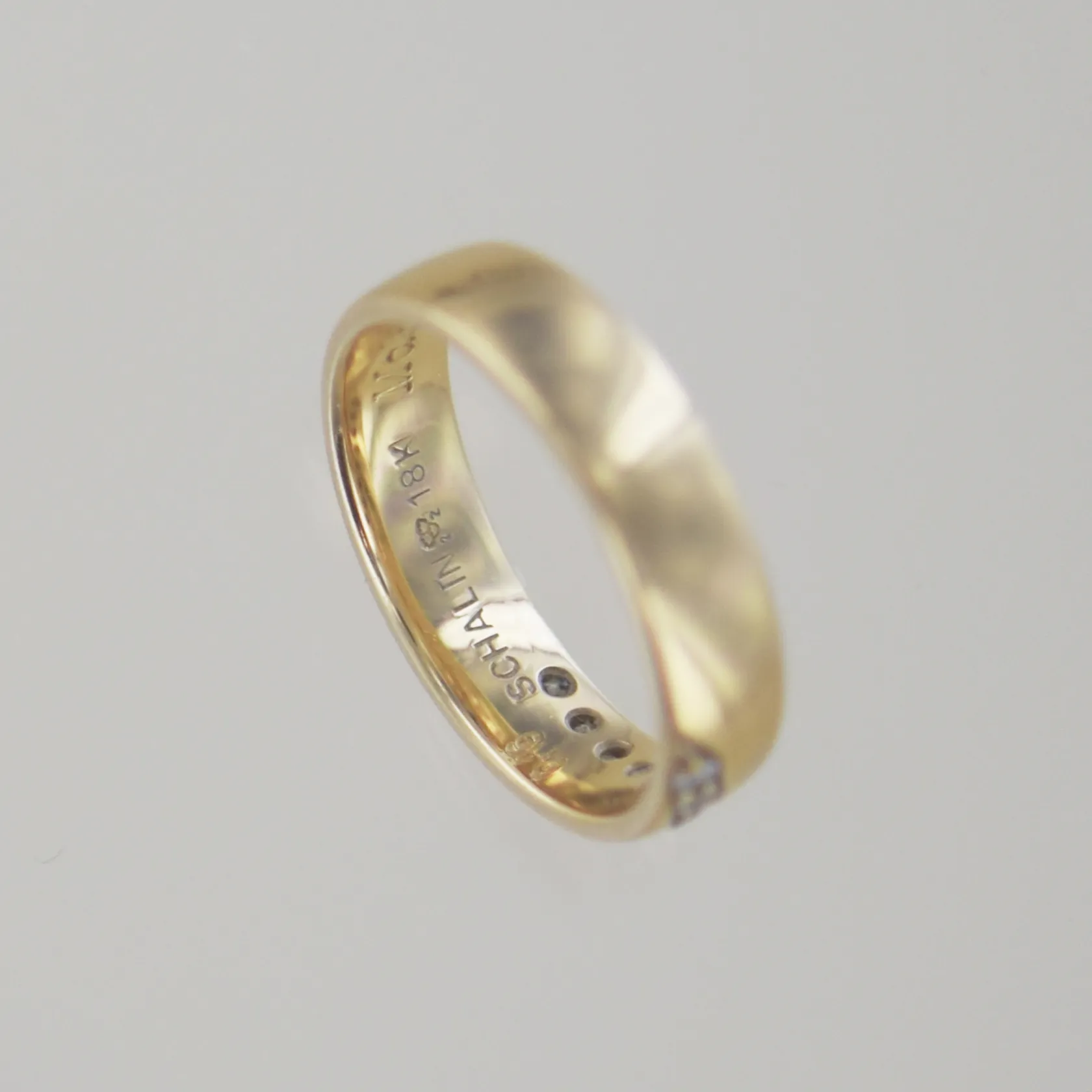 Ring med diamanter 0,16ct, Ø 17¼ mm, graverad, 18K Vikt: 5,3 g.
