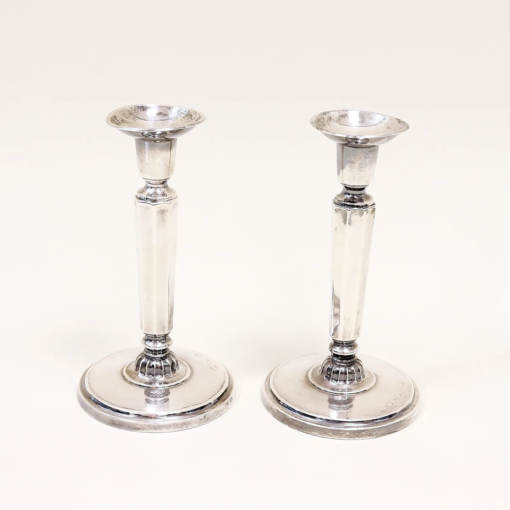 Ett par ljusstakar, 155mm, skevheter på ljuskoppar, repor, fylld botten, bruttovikt 329,3g, Guldsmedsaktiebolaget, Stockholm 1964, silver 830/1000 Vikt: 329,3 g.