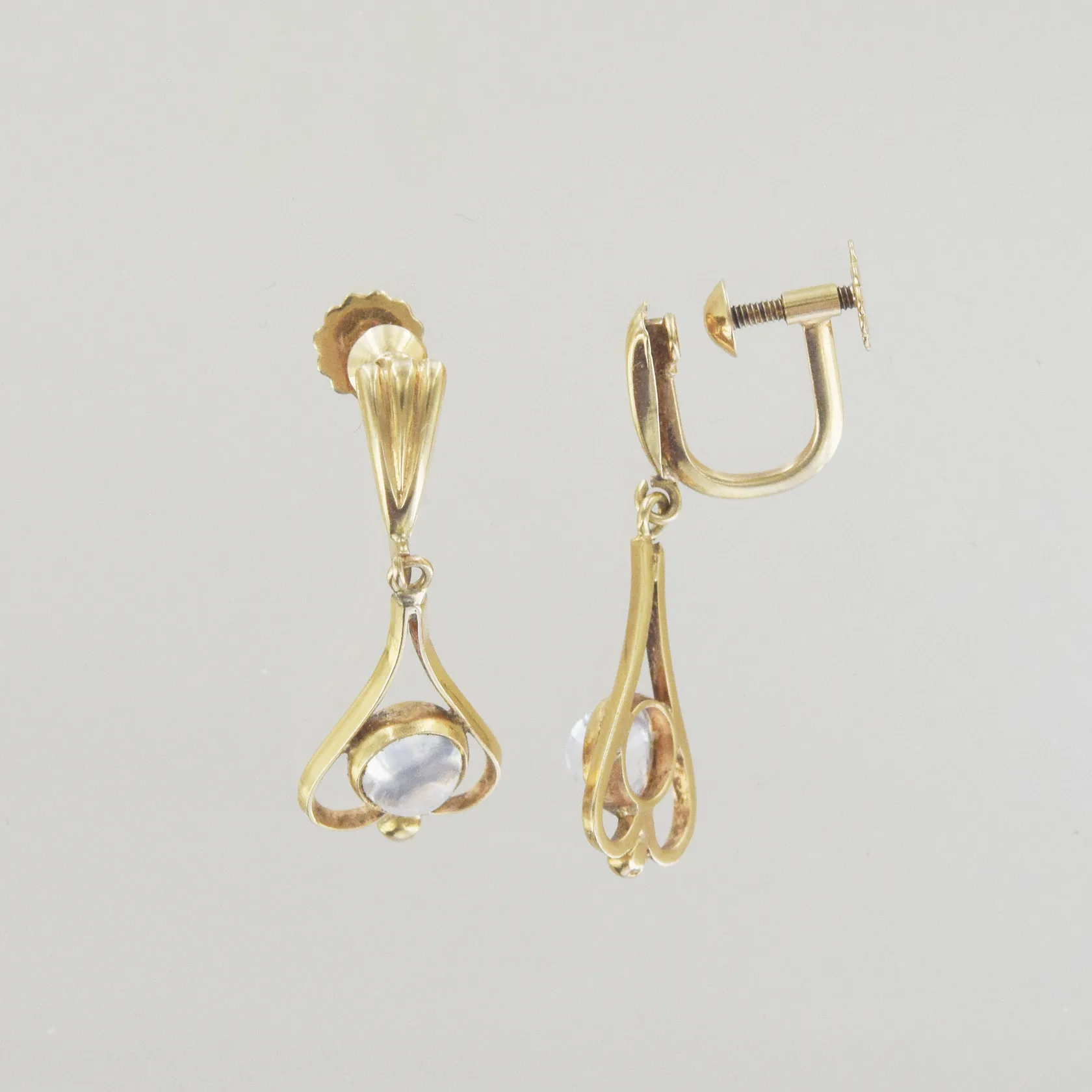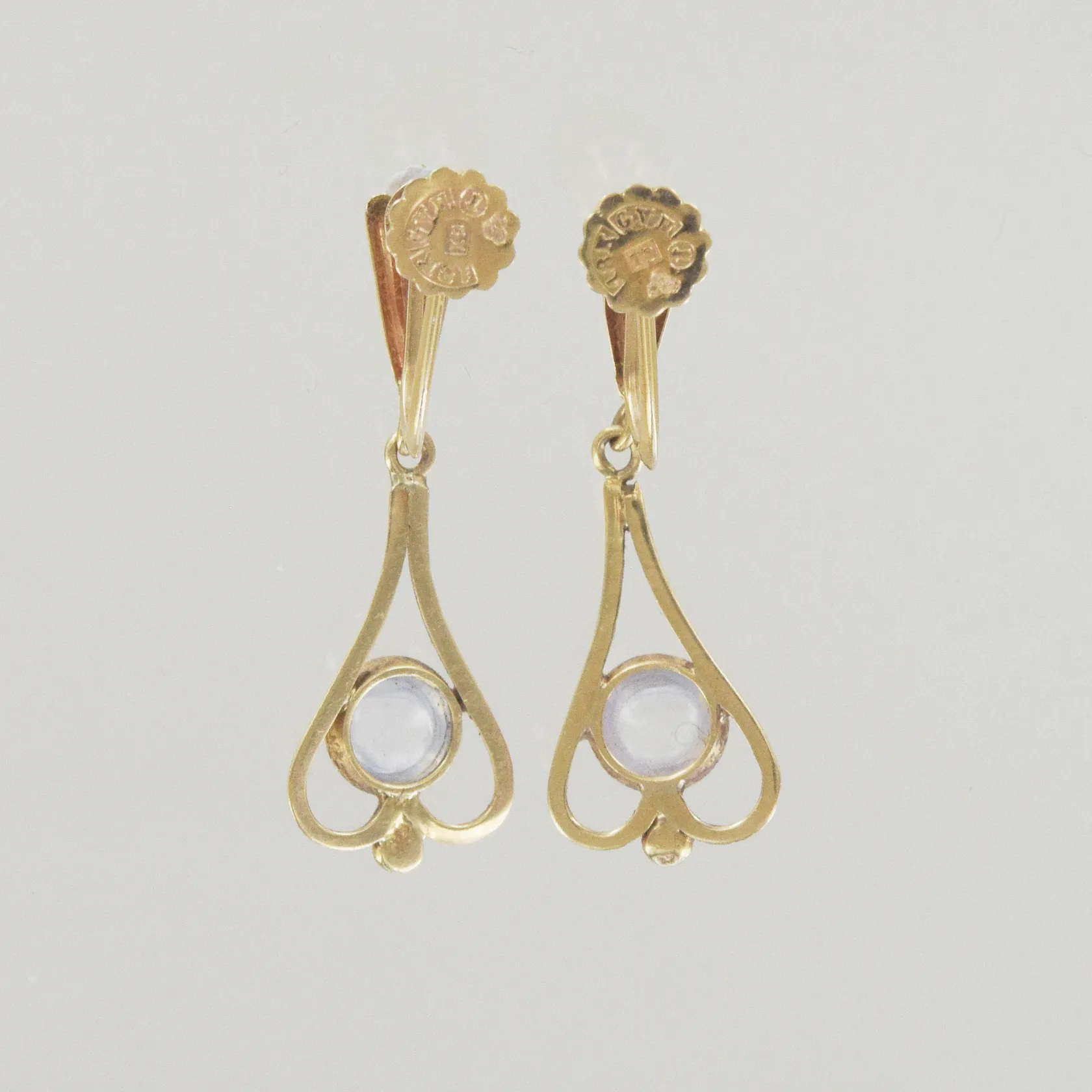 Ett par örhängen med månsten år 1959, längd 2,5 cm, 18K Vikt: 2,5 g.