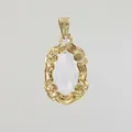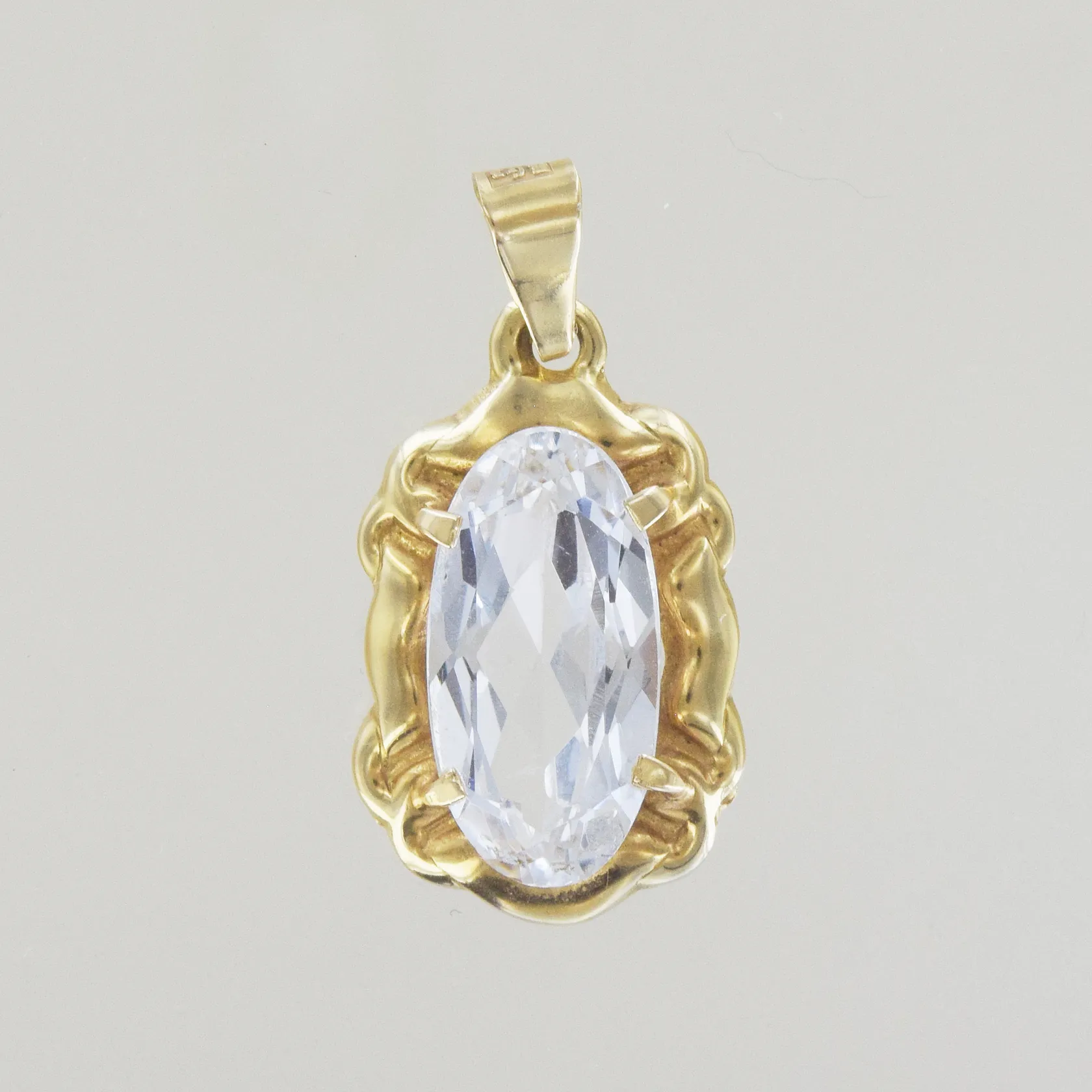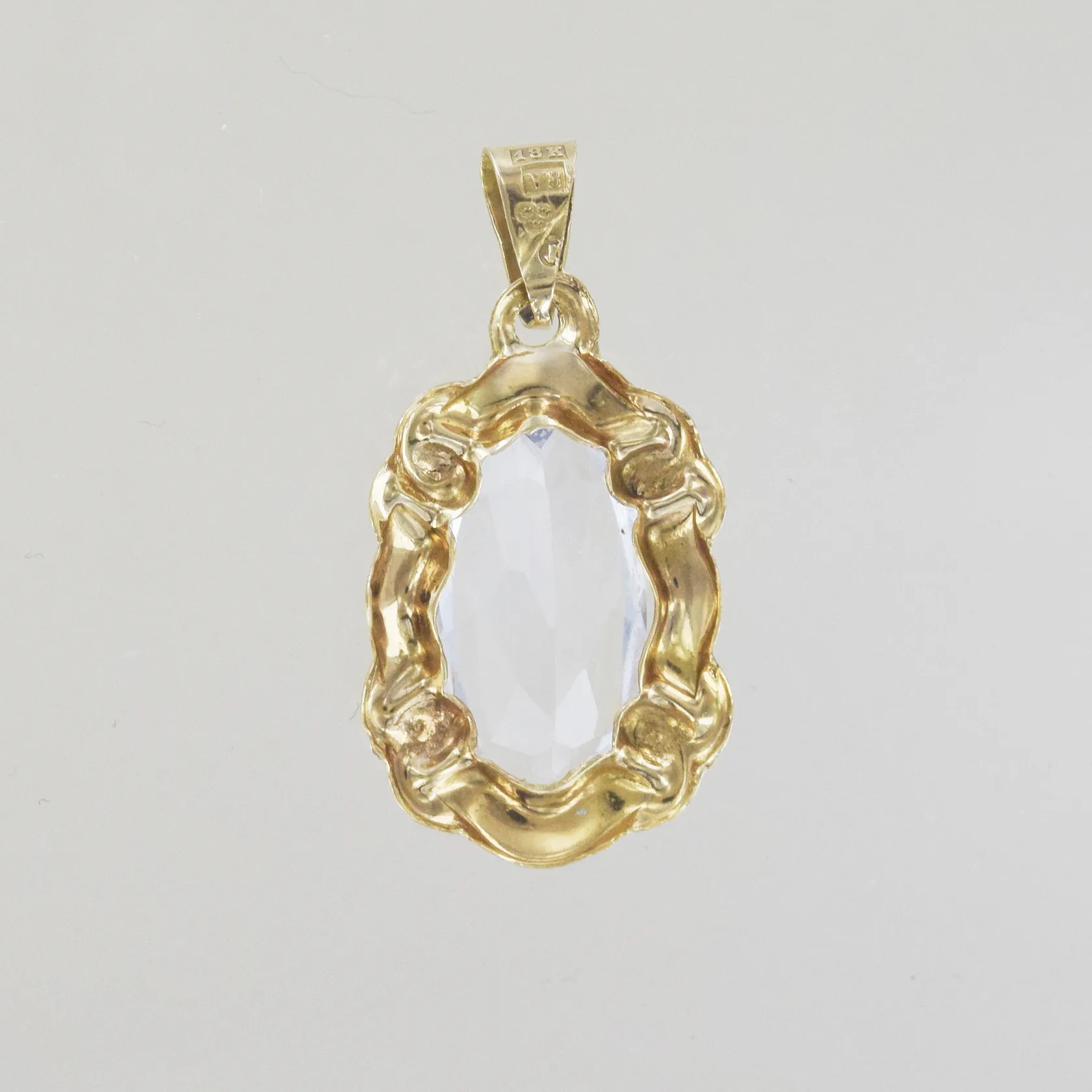 Hänge med vit sten, längd 3 cm, bredd 1,5 cm, 18K Vikt: 2,7 g.