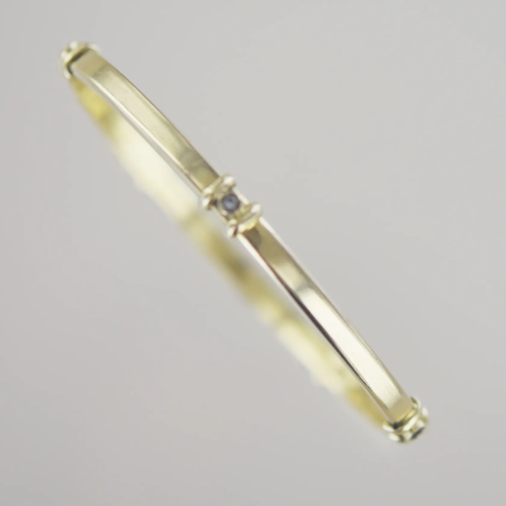 Armring med stenar, diameter 6,5 cm, bredd 4 mm, små repigt, 14K Vikt: 8,7 g.