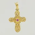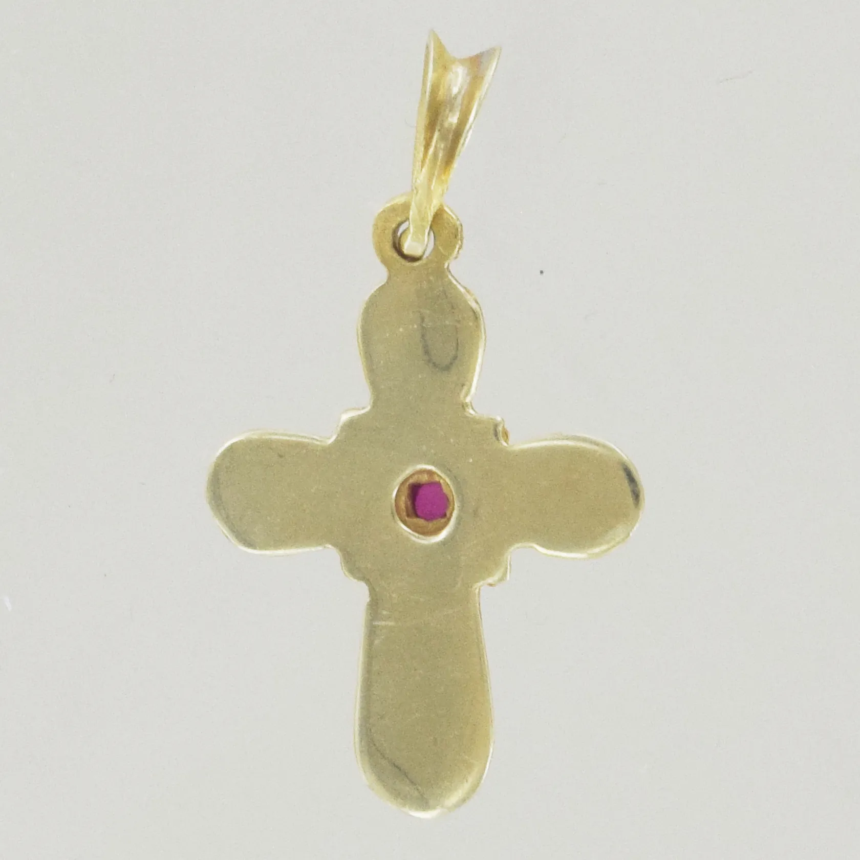 Kors med vinröd sten, längd 2,8 x 1,7 cm, 14K Vikt: 1,5 g.