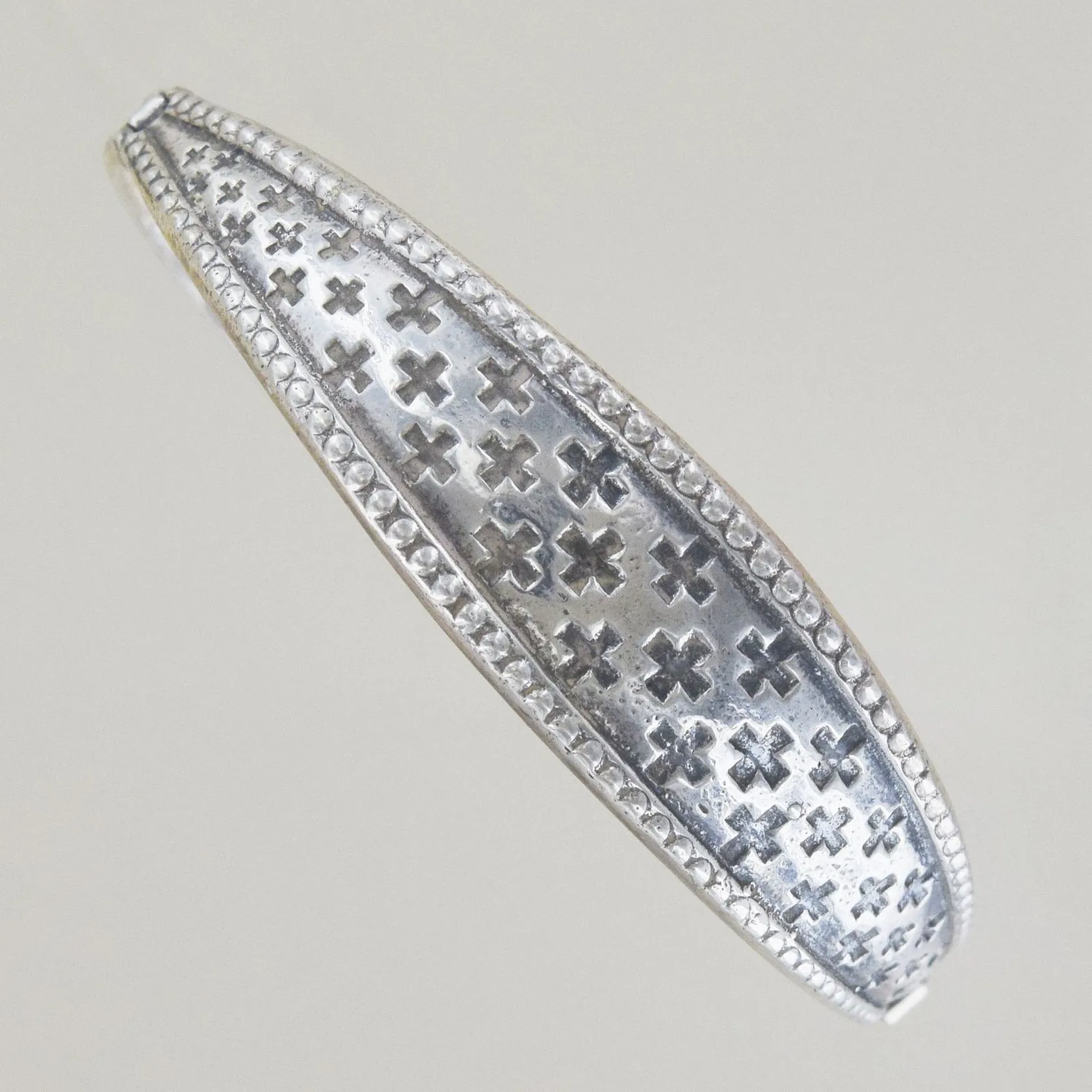 Armring oval, O 5 x 5,5 cm, bredd 4-14 mm, lite ojämn, silver Vikt: 17,5 g.
