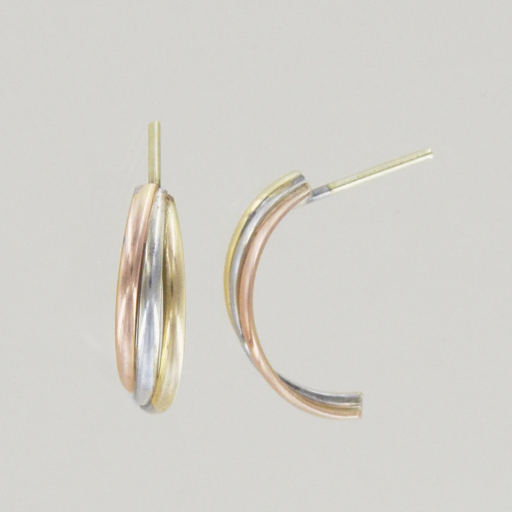 Ett par örhängen 3 färger, höjd 19 mm, bredd 5 mm, ploppar saknas, 18K Vikt: 2,1 g.