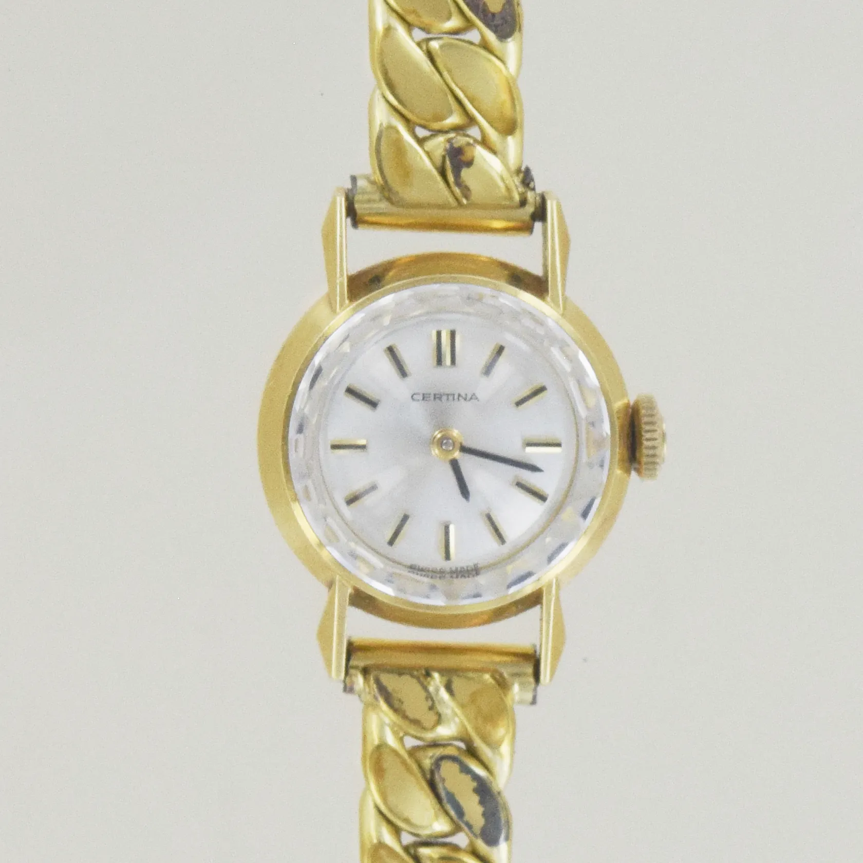 Damur Certina manuell, längd 17 cm, 18K boet, går ej, armband i doublé defekt, bv 23,3gr Vikt: 23,3 g.