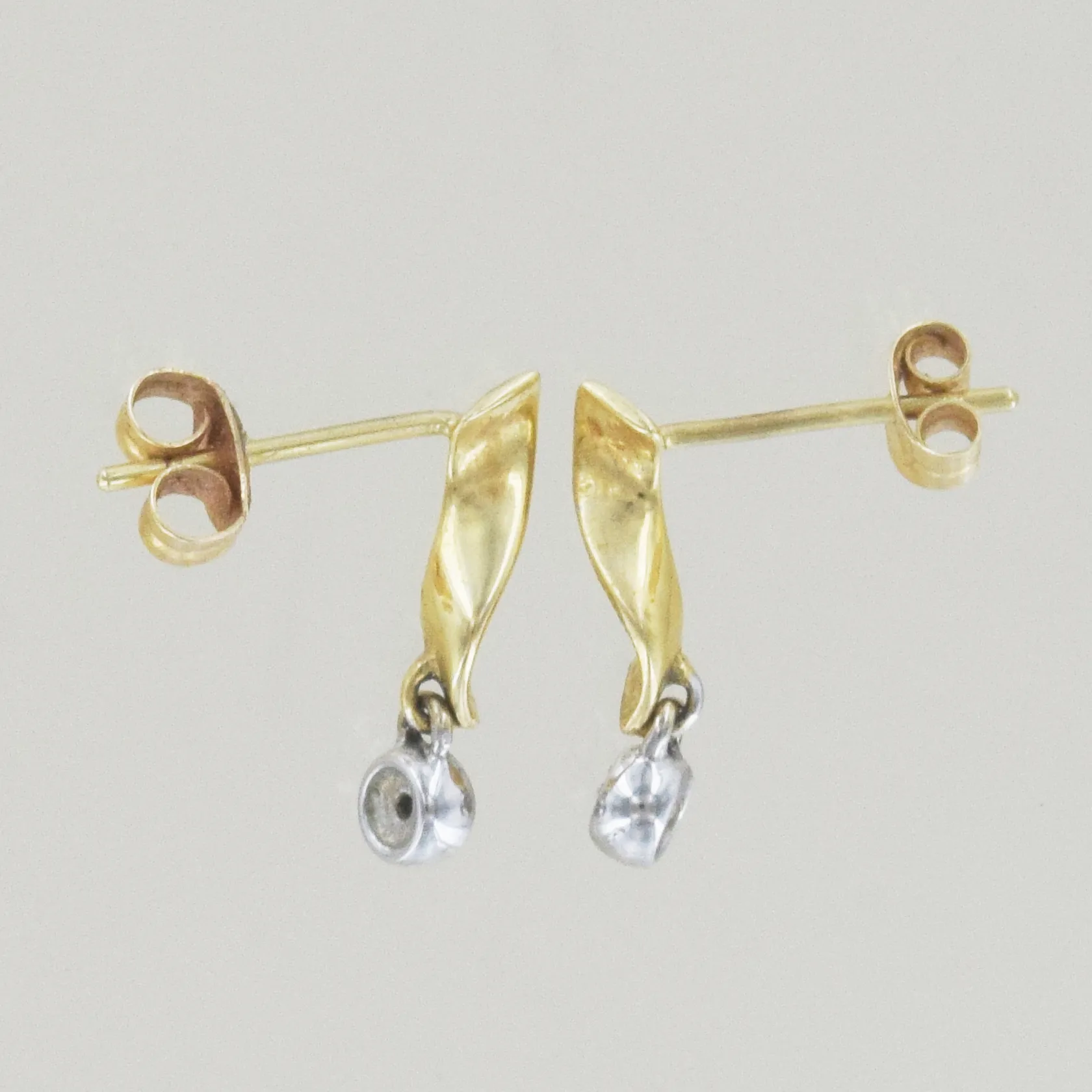 Ett par örhängen 2 färger med sten , längd 1,5 cm,18K Vikt: 1,9 g.