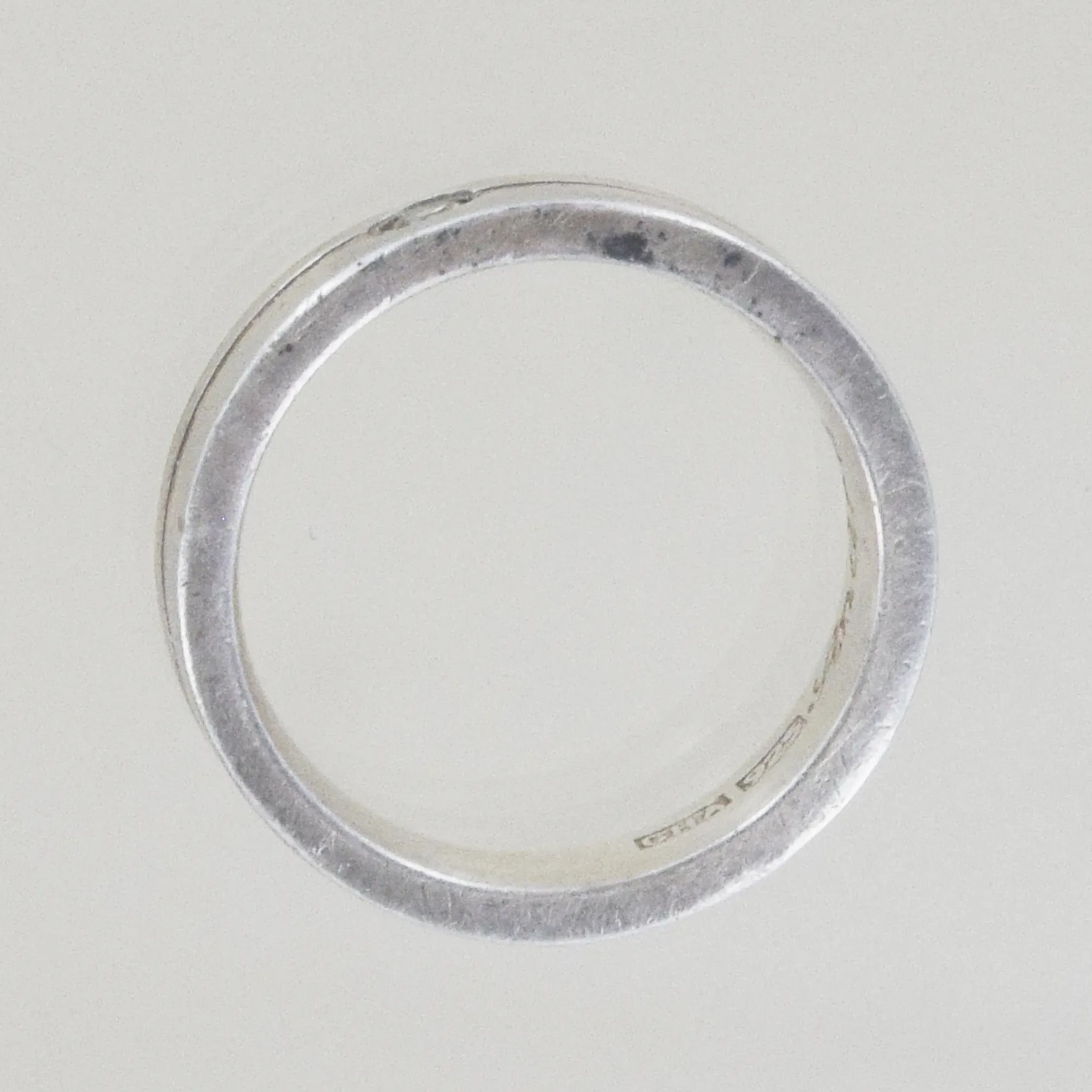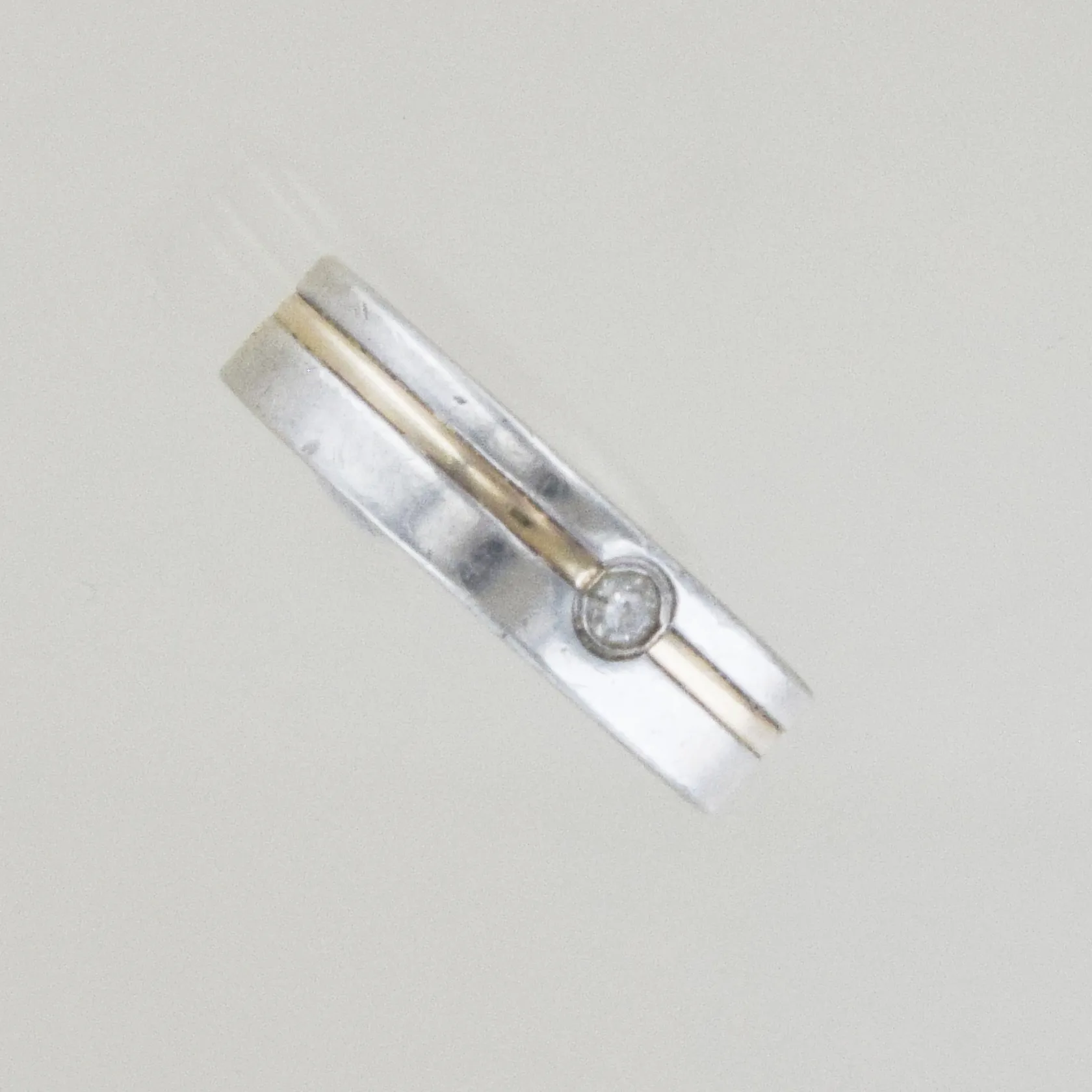Ring med diamant, Ø 16 mm, bredd 5,1 mm, graverad, 18K/925/1000 Vikt: 5 g.