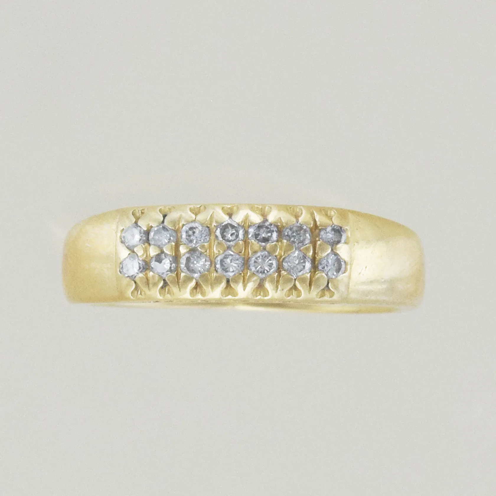 Ring med diamanter 14 x 0,01ct, Ø 17 mm, bredd 5,7 mm, 18K Vikt: 4 g.