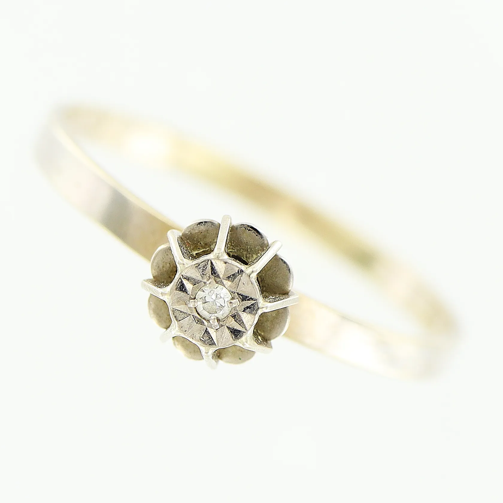 Ring, diamant 8/8-slipad ca 0,01ct, stl 17½, bredd 1,6-5,1mm, höjd på infattning ca 5mm, vitguld, 18K. Vikt: 1,2 g.
