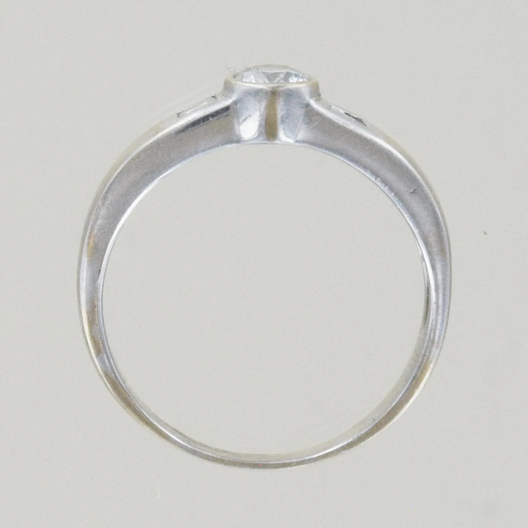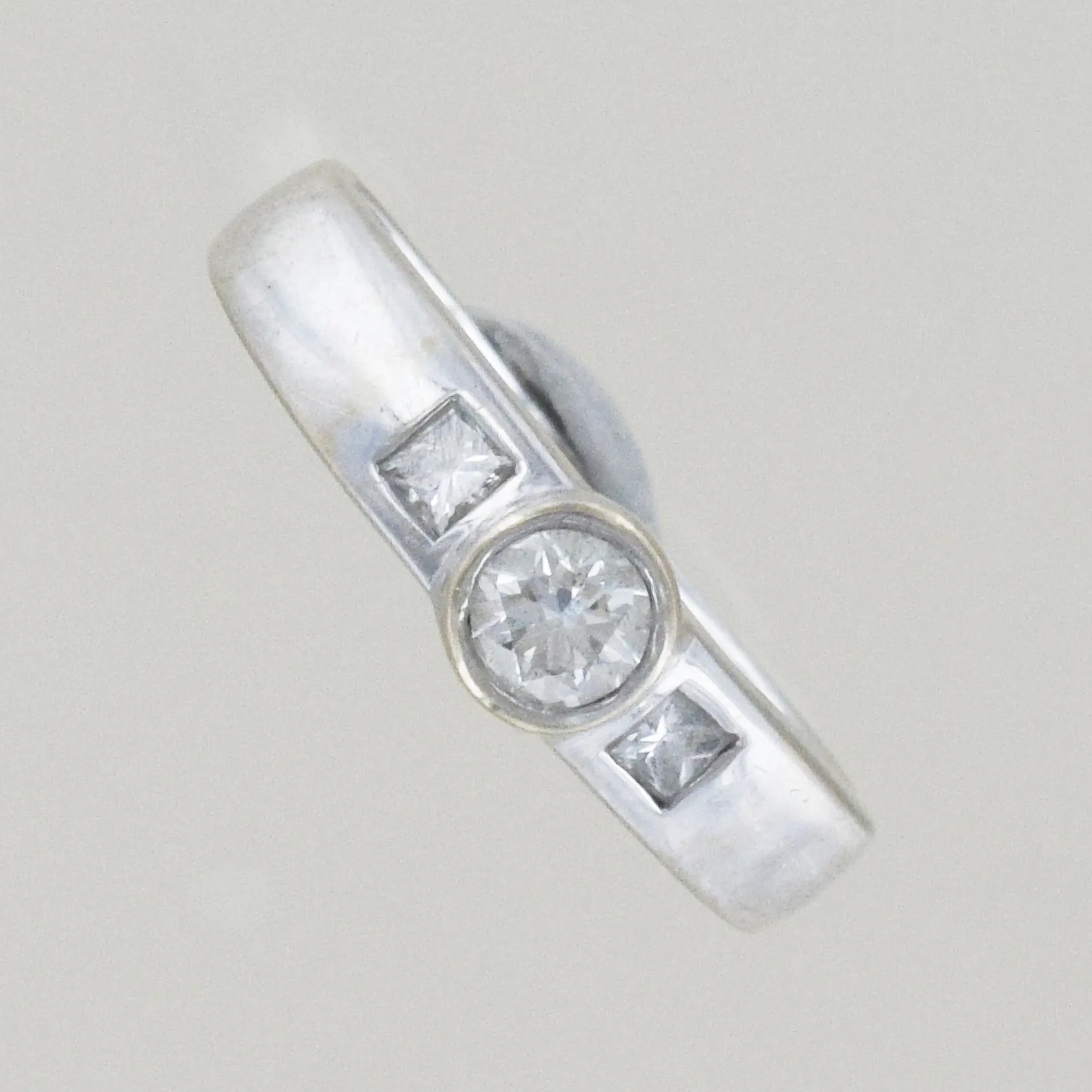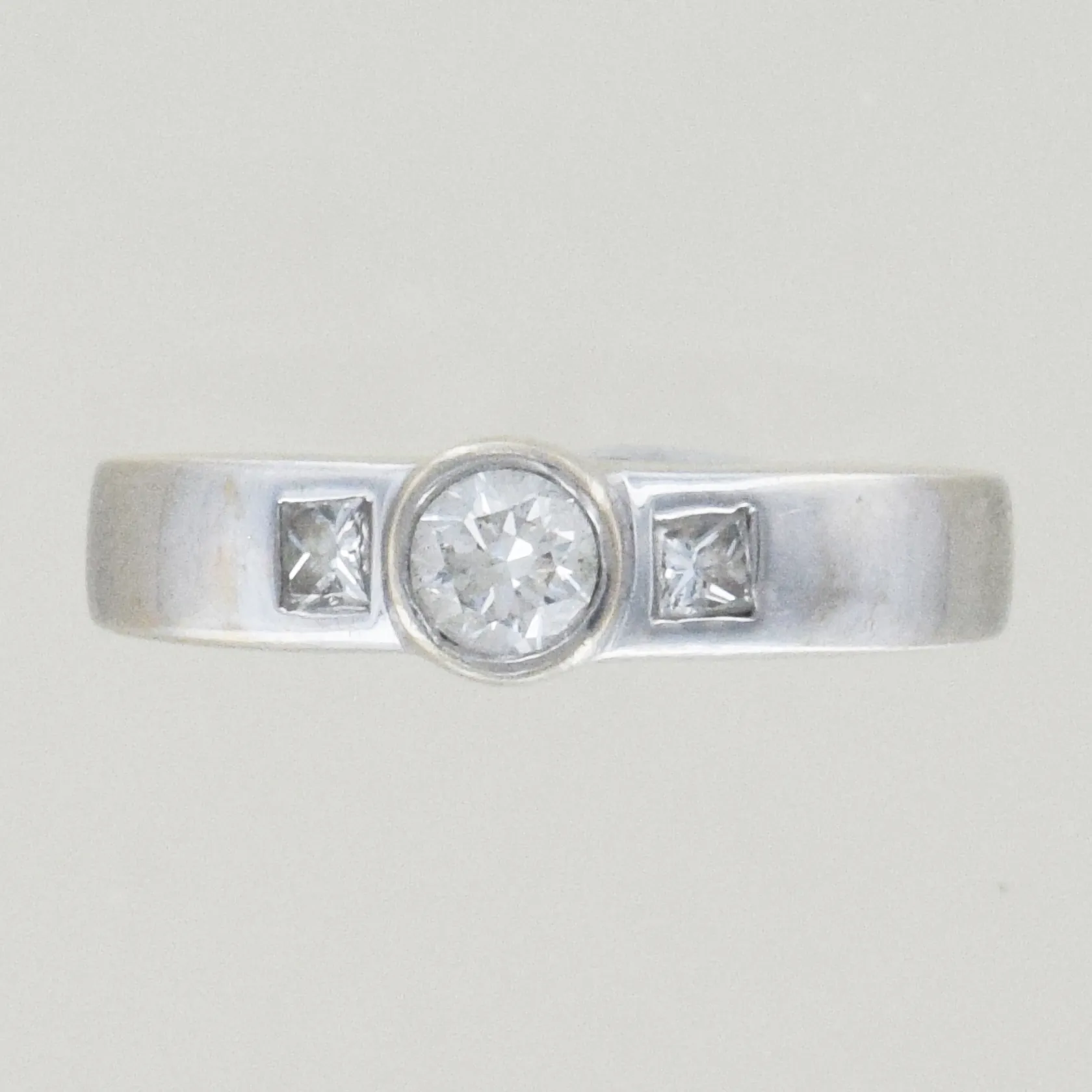Ring med diamanter 0,16ct + 0,03ct x 2, Ø 17¾ mm, 18K Vikt: 4,1 g.