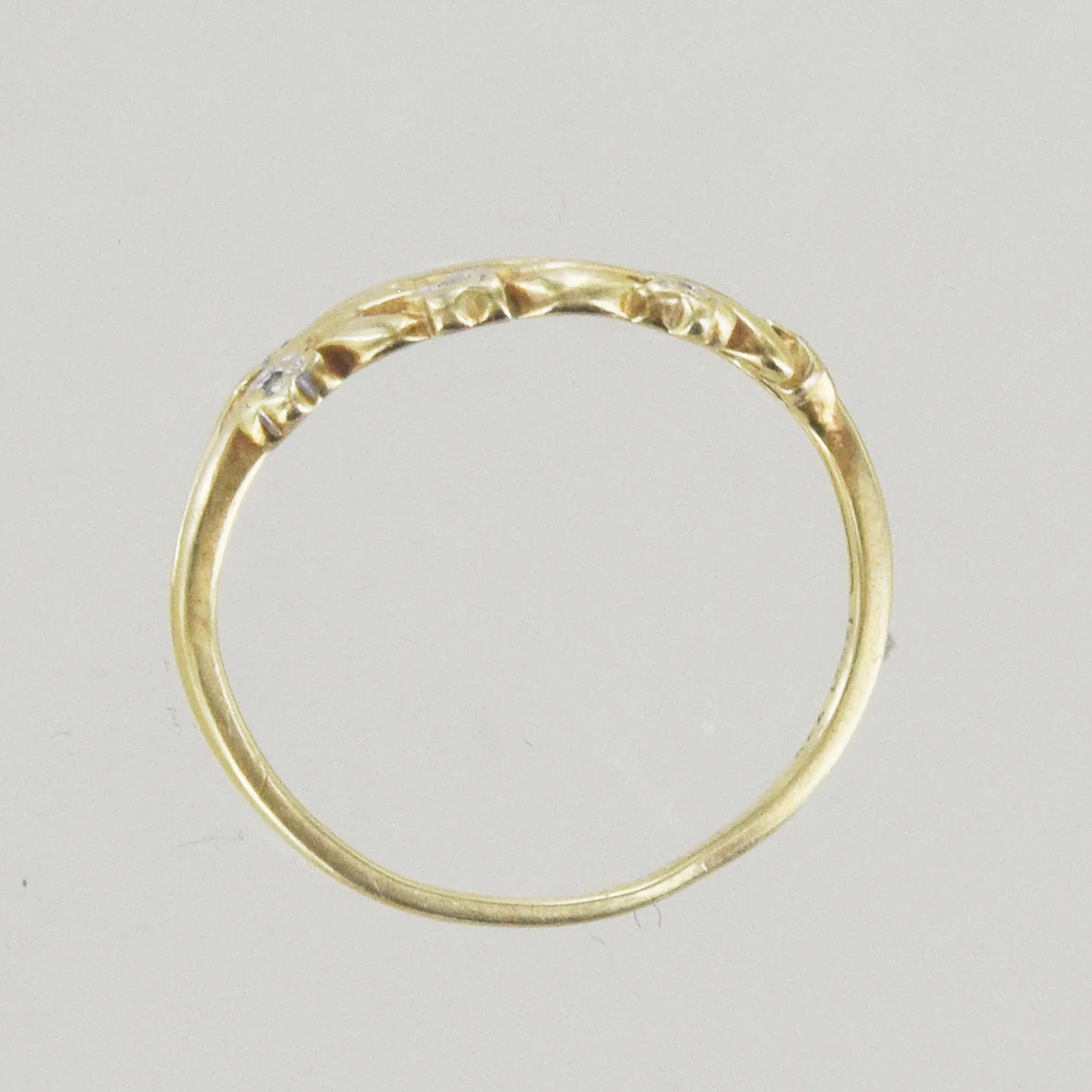 Ring med stenar ,Ø 17 mm, bredd 7 mm, ojämn skena, 18k Vikt: 1,8 g.