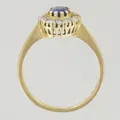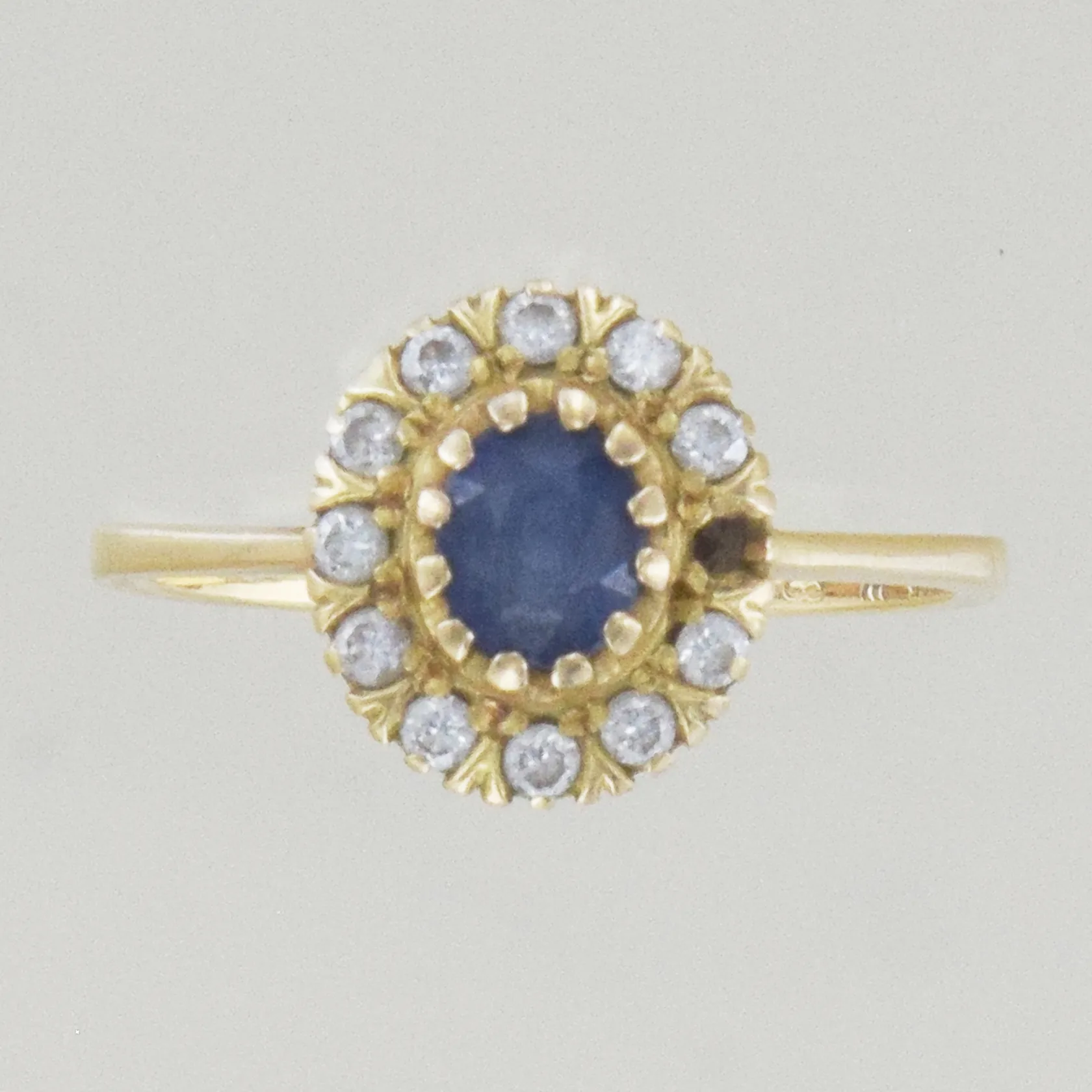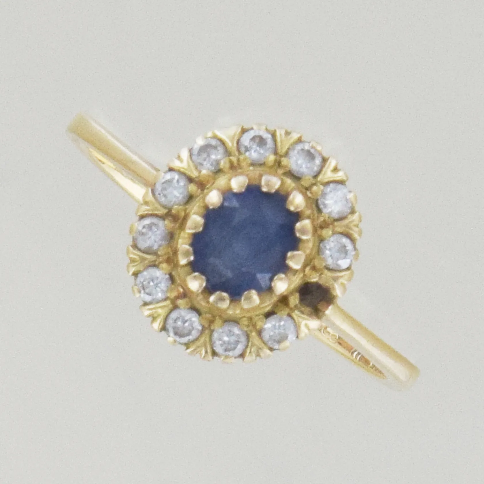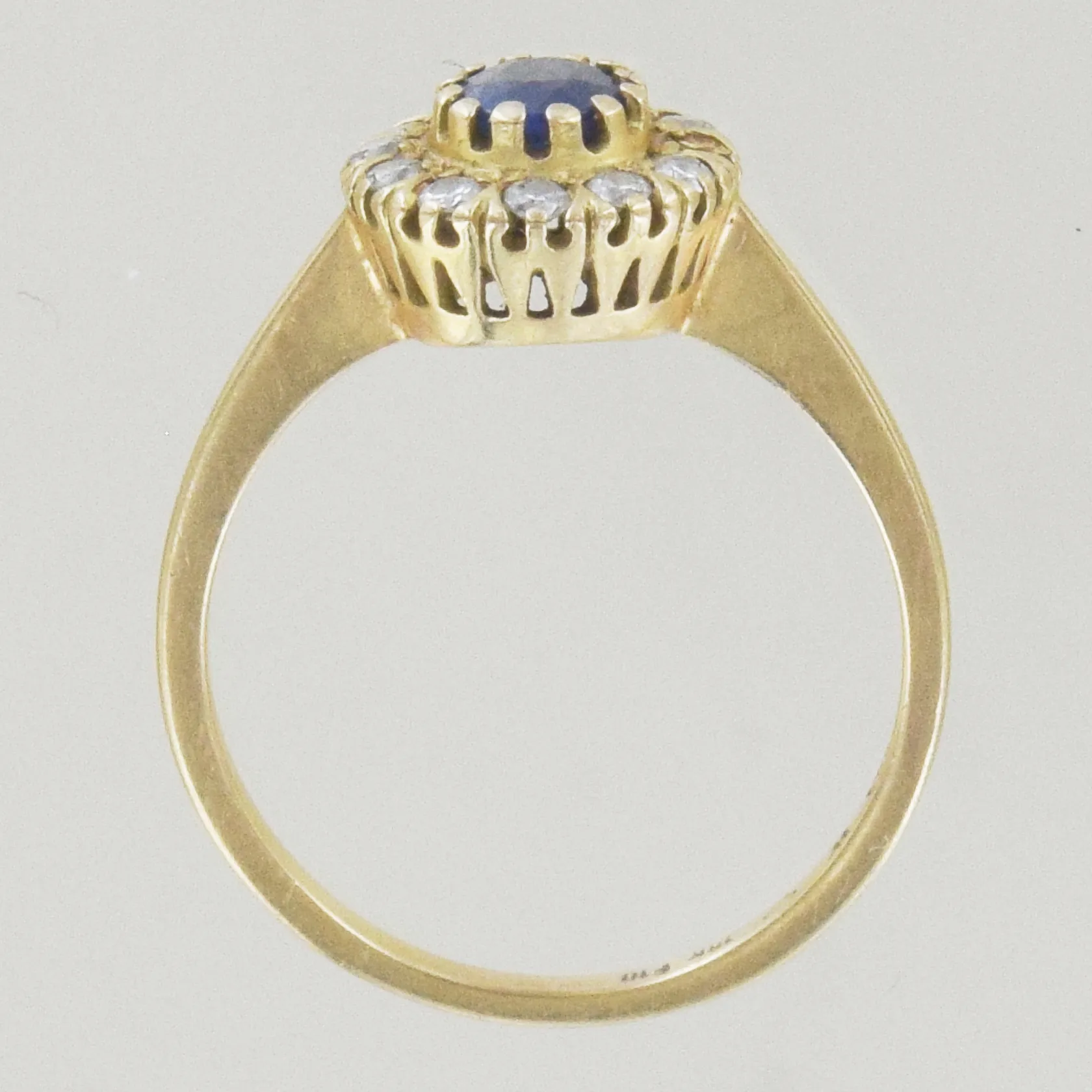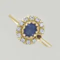 Ring med 10 diamanter 0,05 ct och en safir, Ø 16½ mm, diamant /klo saknas, 18K Vikt: 2,6 g.