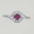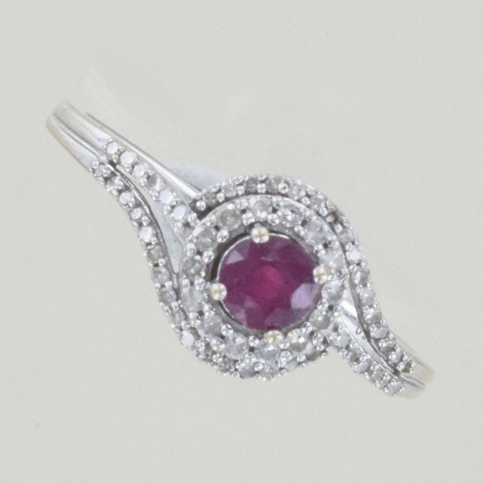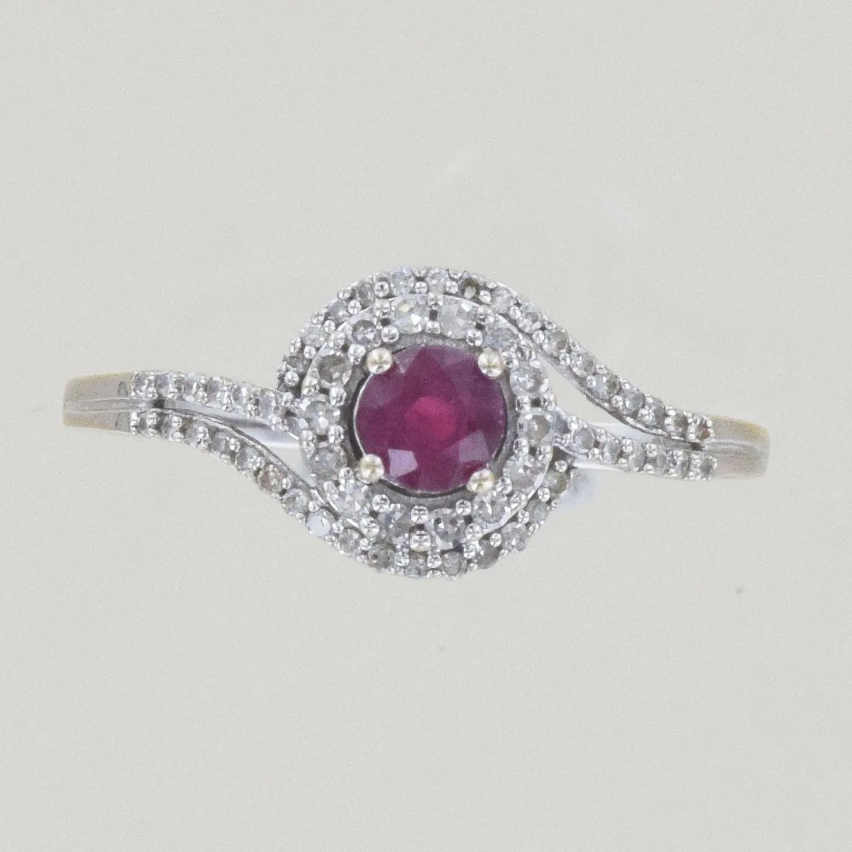 Ring med briljanter/rubin Ø 19 mm, bredd 9 mm, 18K, 1 sten saknas Vikt: 3 g.