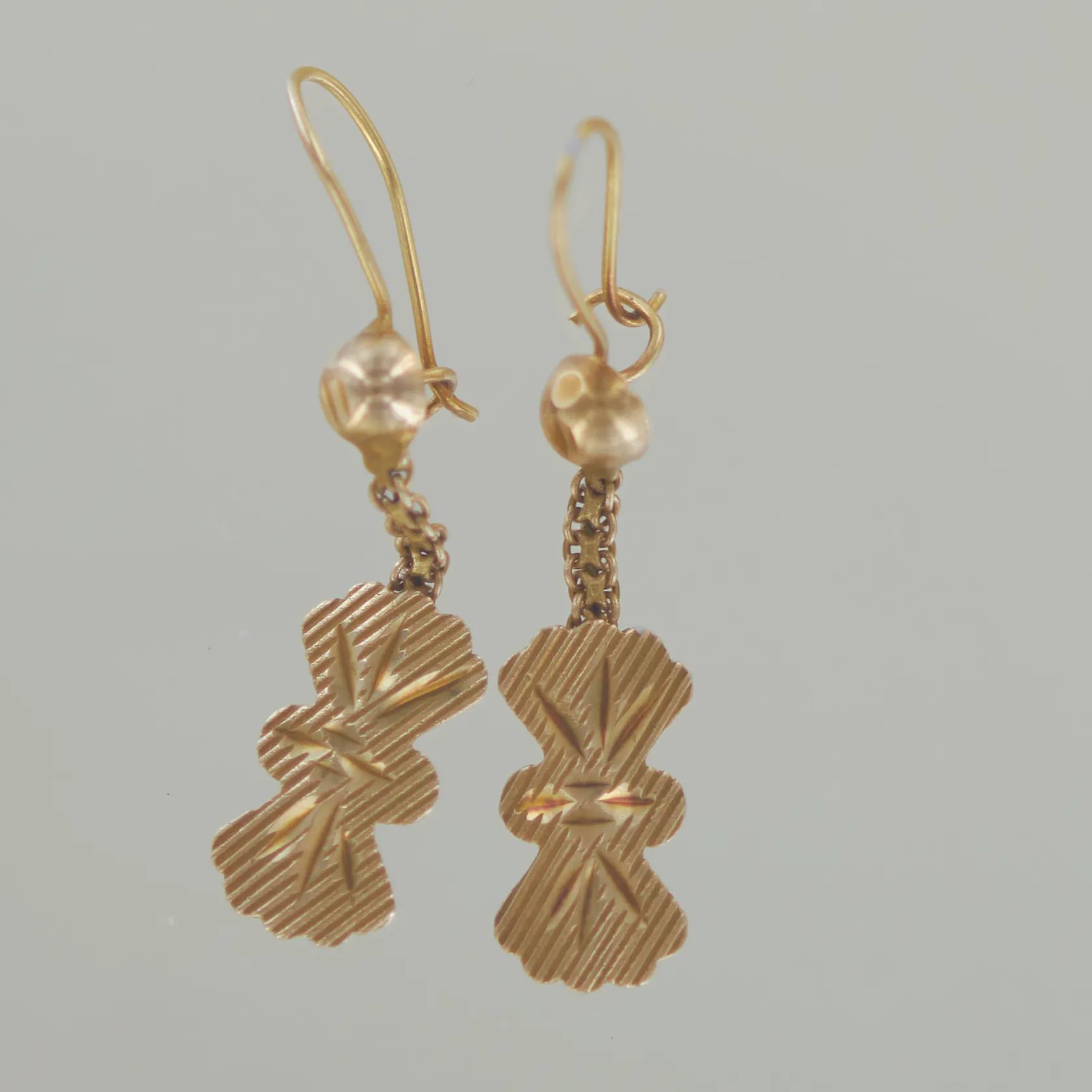 Ett par örhängen, längd 3,8 cm, lite ojämn stift, 21K Vikt: 1,6 g.