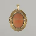 Hänge/brosch camé 50-tal, längd 3,5 cm, bredd 2 cm, 18K bv 4,5 gr Vikt: 4,5 g.