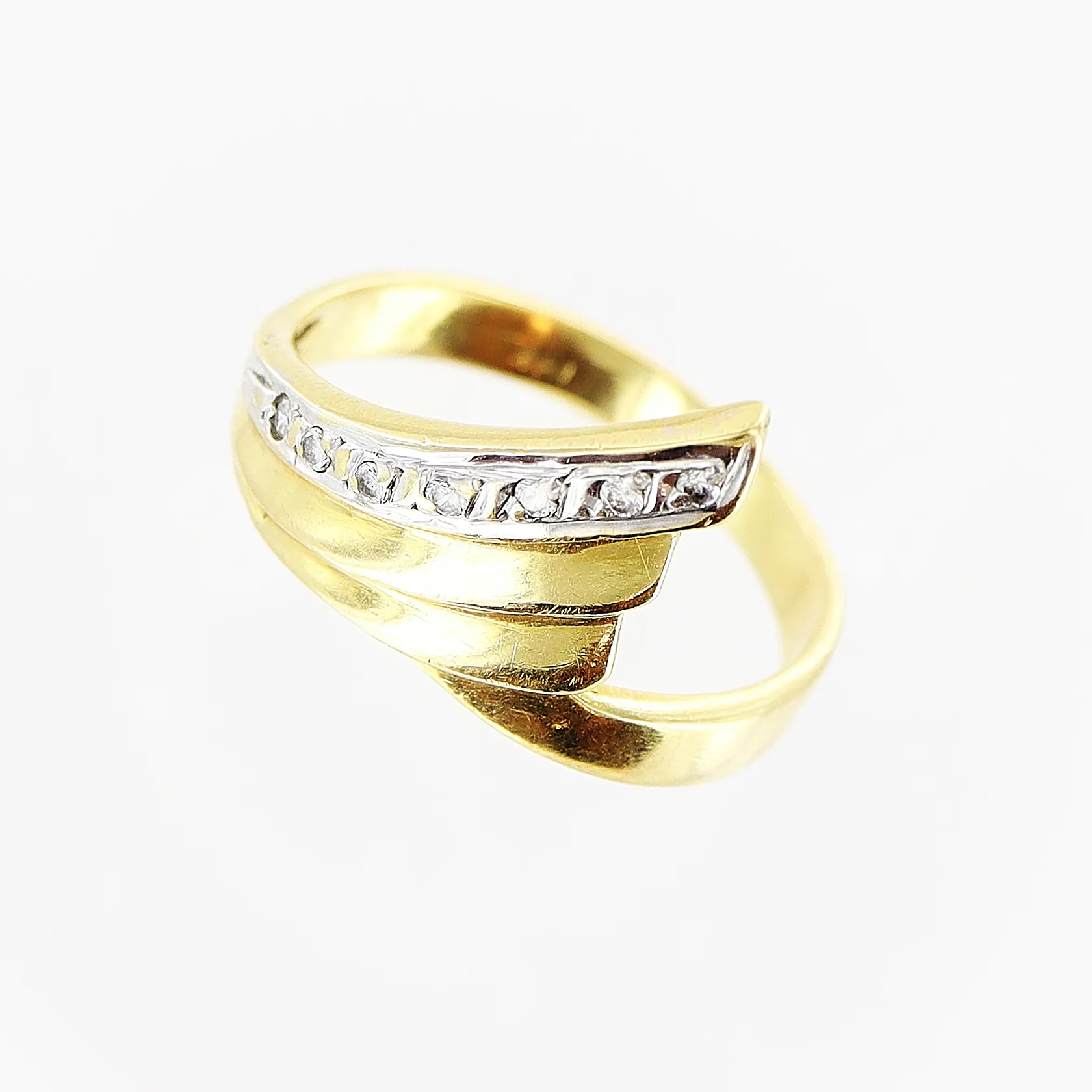 Ring, vita stenar, stl 18, bredd 2,5-15mm, smärre skevhet, 18K. Vikt: 4,1 g.