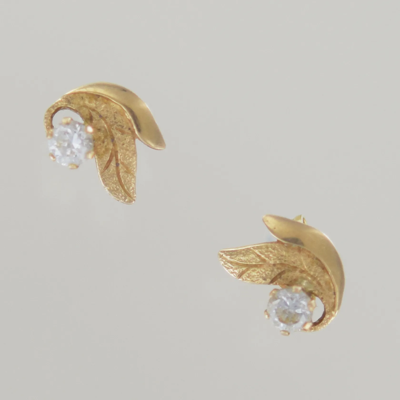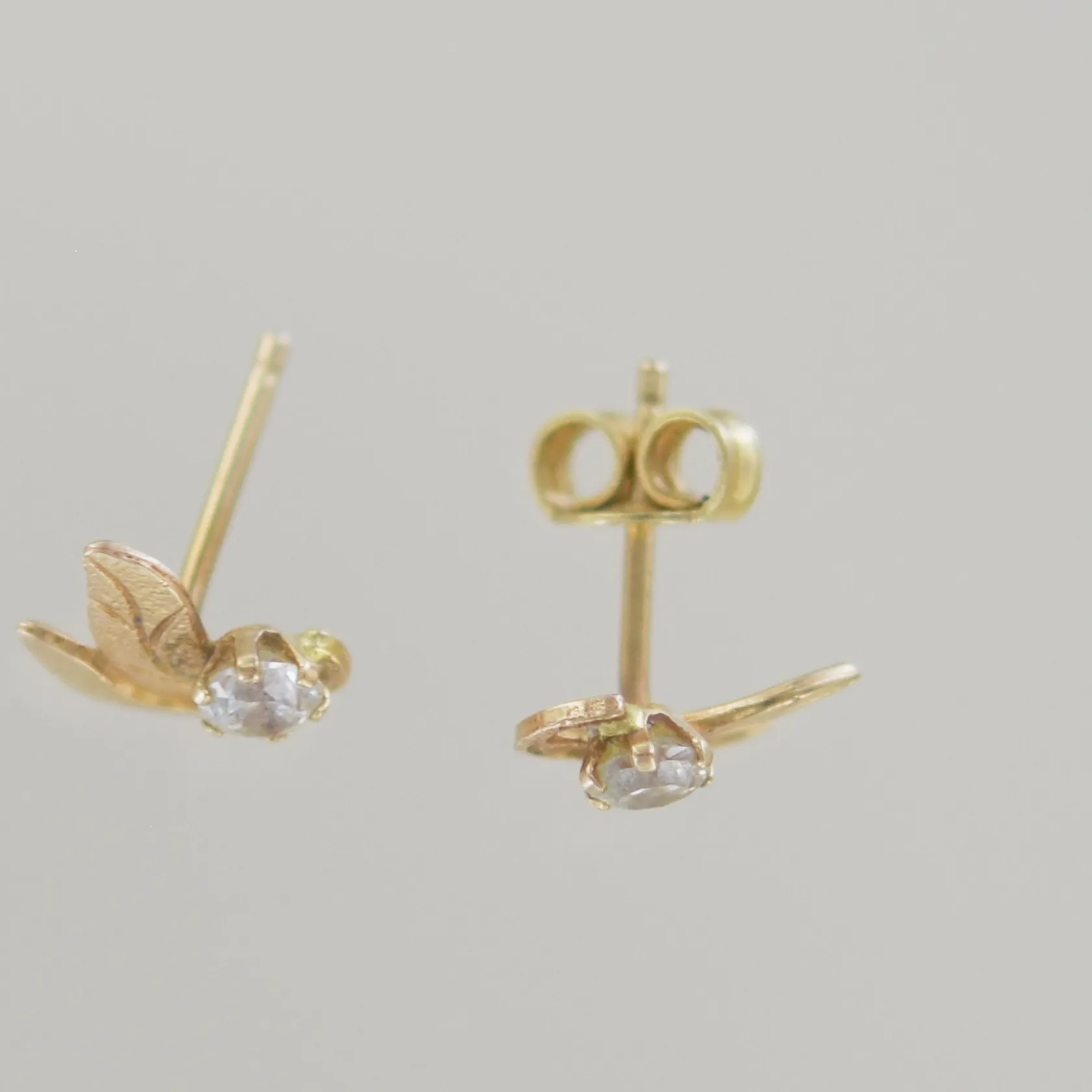Ett par örhängen med sten, plopp saknas, höjd 8 mm, 18K Vikt: 0,8 g.