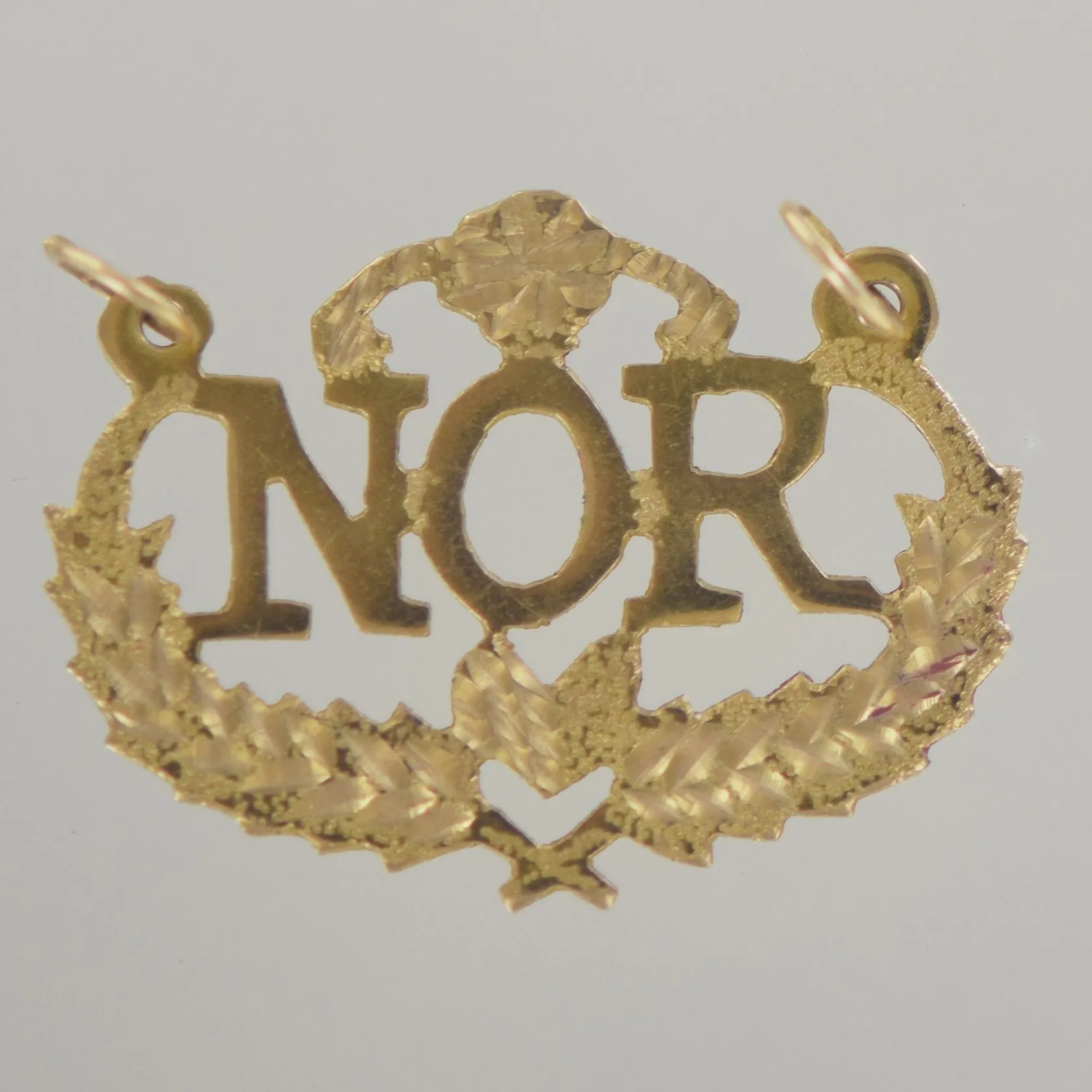 Hänge namn, NOR, längd 3,3 x2,4 cm, 21K Vikt: 2,3 g.