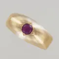 Ring med röd sten, Ø 17½ mm, bredd 8,4 mm, 18K Vikt: 2,6 g.
