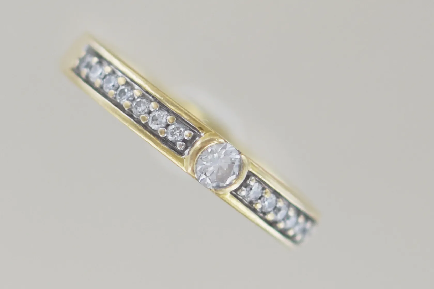 Ring med diamanter 0,12ct, Ø 16¾ mm, graverad, 18K Vikt: 3 g.